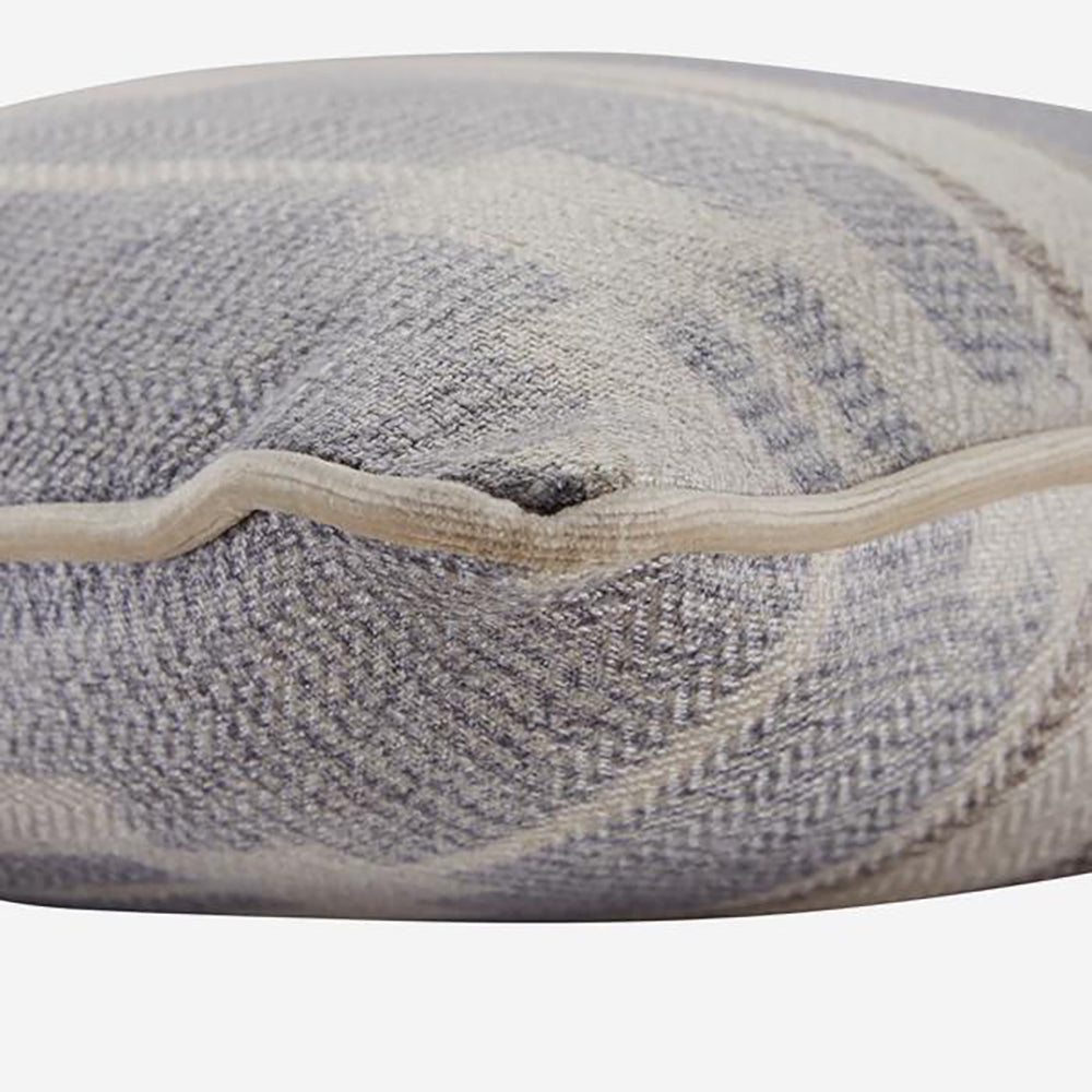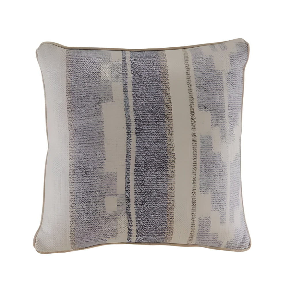Relax in comfort and style with this elegant Indus Cloud cushion from Andrew Martin. The square cushion has a white background and stripes of blue, brown and grey to give a tribal pattern design.