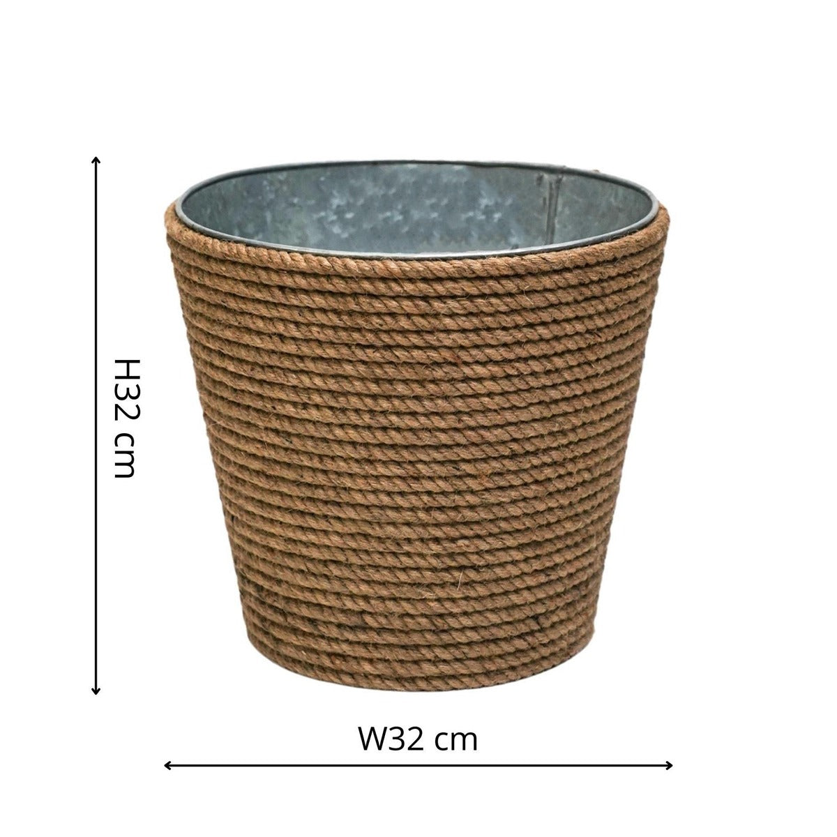 Christmas Tree Bucket 32cm - Jute & Galvanised Steel