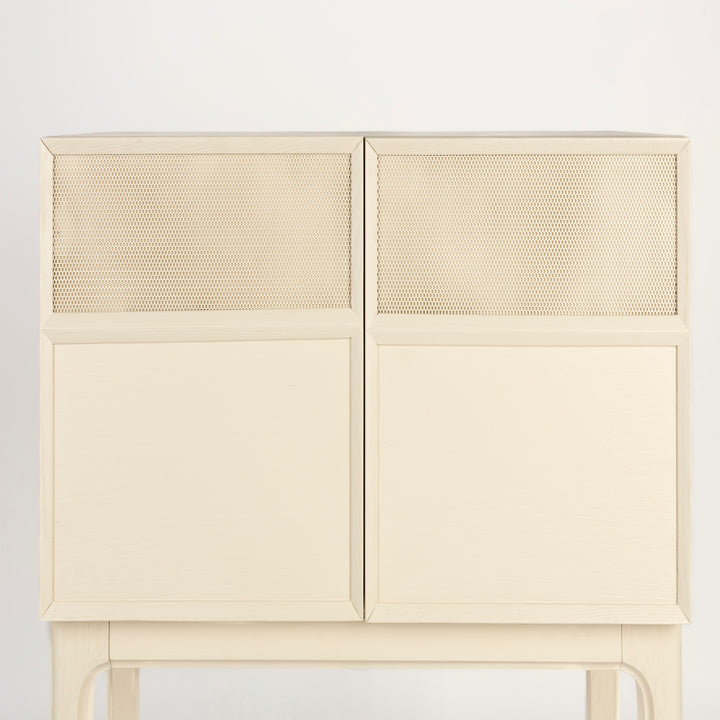 Carefully crafted with a keen eye for detail, the June cabinet from Zuiver features captivating panelling on its doors, adding a touch of sophistication to any room. The doors themselves are a blend of metal and wood materials, creating a harmonious contrast that enhances the overall aesthetic appeal. Step inside and discover four spacious compartments within the June cabinet, designed to accommodate all your storage needs.