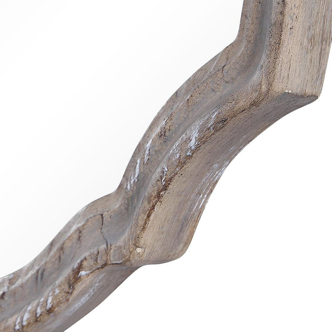 The Keiichi Aurelia Wood Effect Mirror is a beautiful addition to any space, featuring an elegant frame finished to resemble natural wood. Light ivory distressing highlights the graceful curves, offering a rustic charm that complements traditional or contemporary settings. This versatile mirror can be hung vertically or horizontally, making it ideal for hallways, living rooms, or entryways.