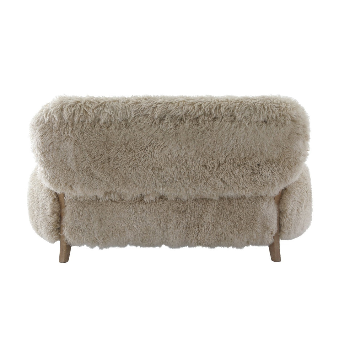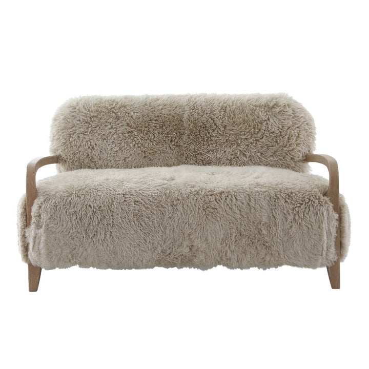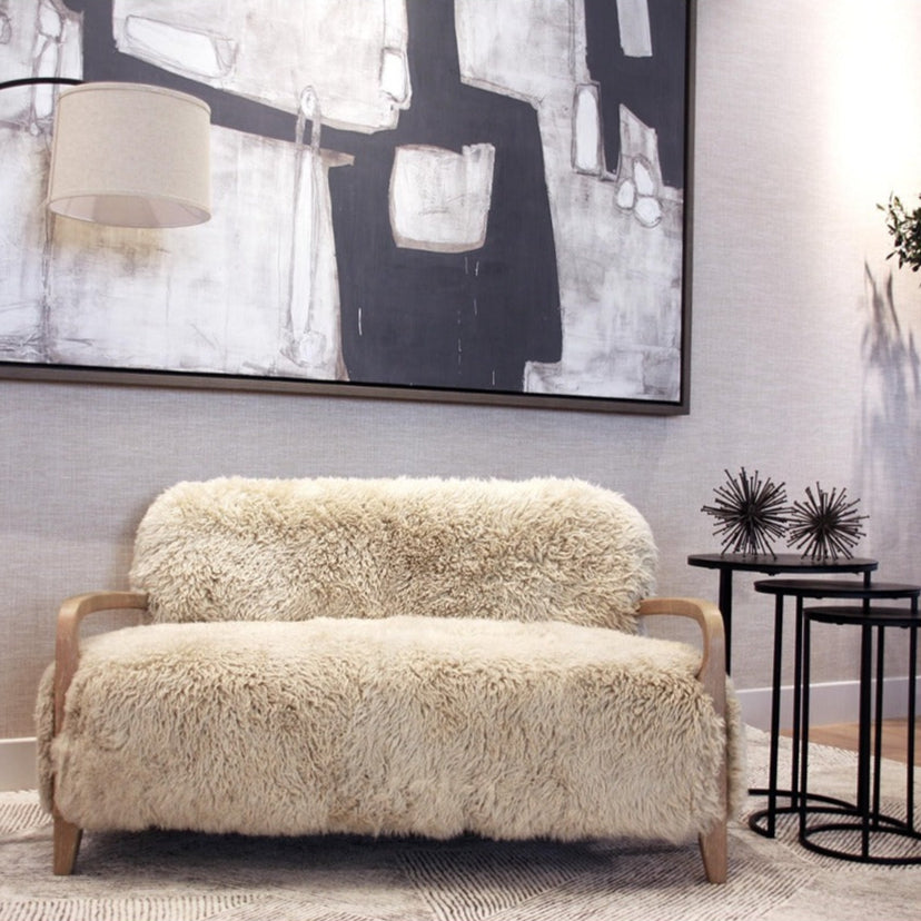 The Keiichi Baaarb Sofa is an embodiment of modern luxury with an edge. Upholstered in real sheepskin, this sofa features gracefully curved oak arms that seamlessly flow into the sturdy base, providing both aesthetic appeal and durability. Ideal for contemporary spaces, it brings texture and a touch of sophistication to any room. Pair it with the Baaarb Accent Chair and Ottoman for a cohesive, chic living area that exudes style and comfort. This sofa stands out as a statement piece, perfect for those who appreciate bold and unique home furnishings.
