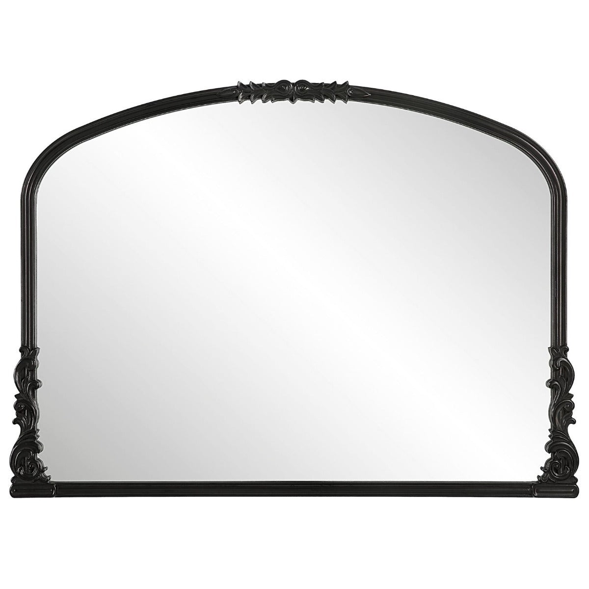 The Keiichi Beatrice Mirror in Black presents a modern take on a classic design. This arch-top mirror features scalloped corners and a satin black metal frame, making it an ideal choice for bathroom vanities or entryways. The minimalist yet elegant design suits a variety of interior styles and is also available in a brushed bronze finish for added versatility.