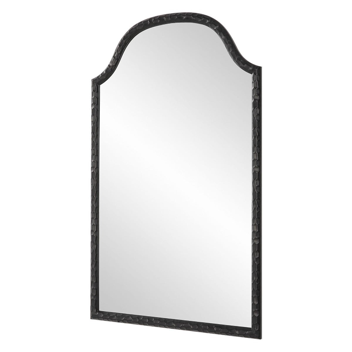 The Keiichi Cast Mirror in Black Finish offers a bold and contemporary touch to any space. The frame's textured design adds an extra layer of interest, while its matte black finish brings a modern and sophisticated look. Perfect for entryways, bathrooms, or living rooms, this arched mirror can be hung vertically to create height or horizontally for a broader visual impact. The Cast Mirror enhances light and space in any room, offering versatility and style. Its elegant simplicity allows it to blend seamlessly with various interior decor themes, making it a must-have for modern homes.