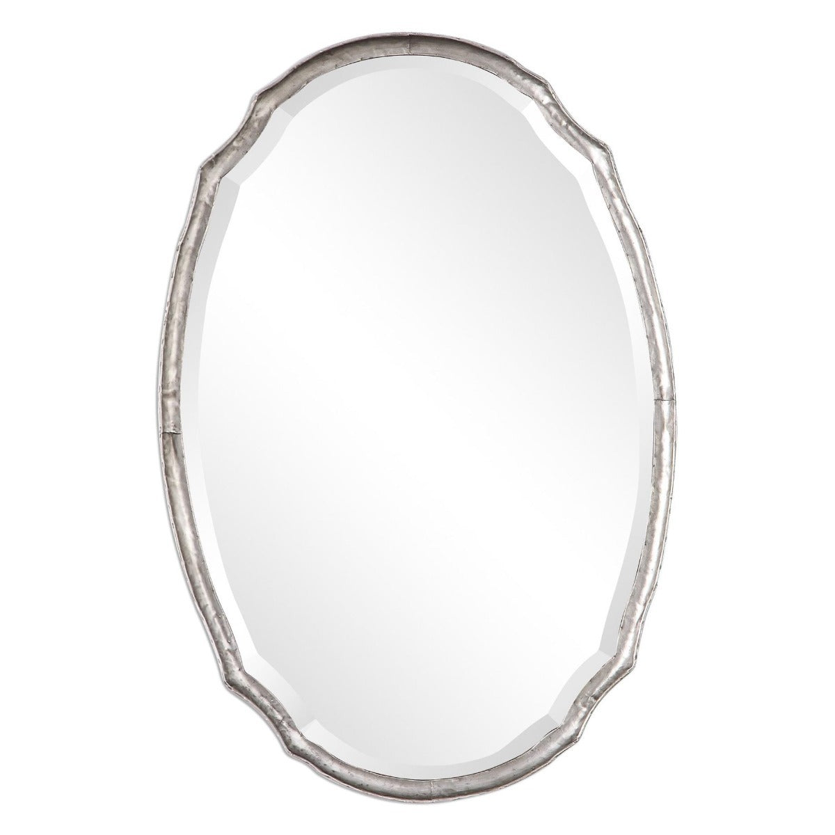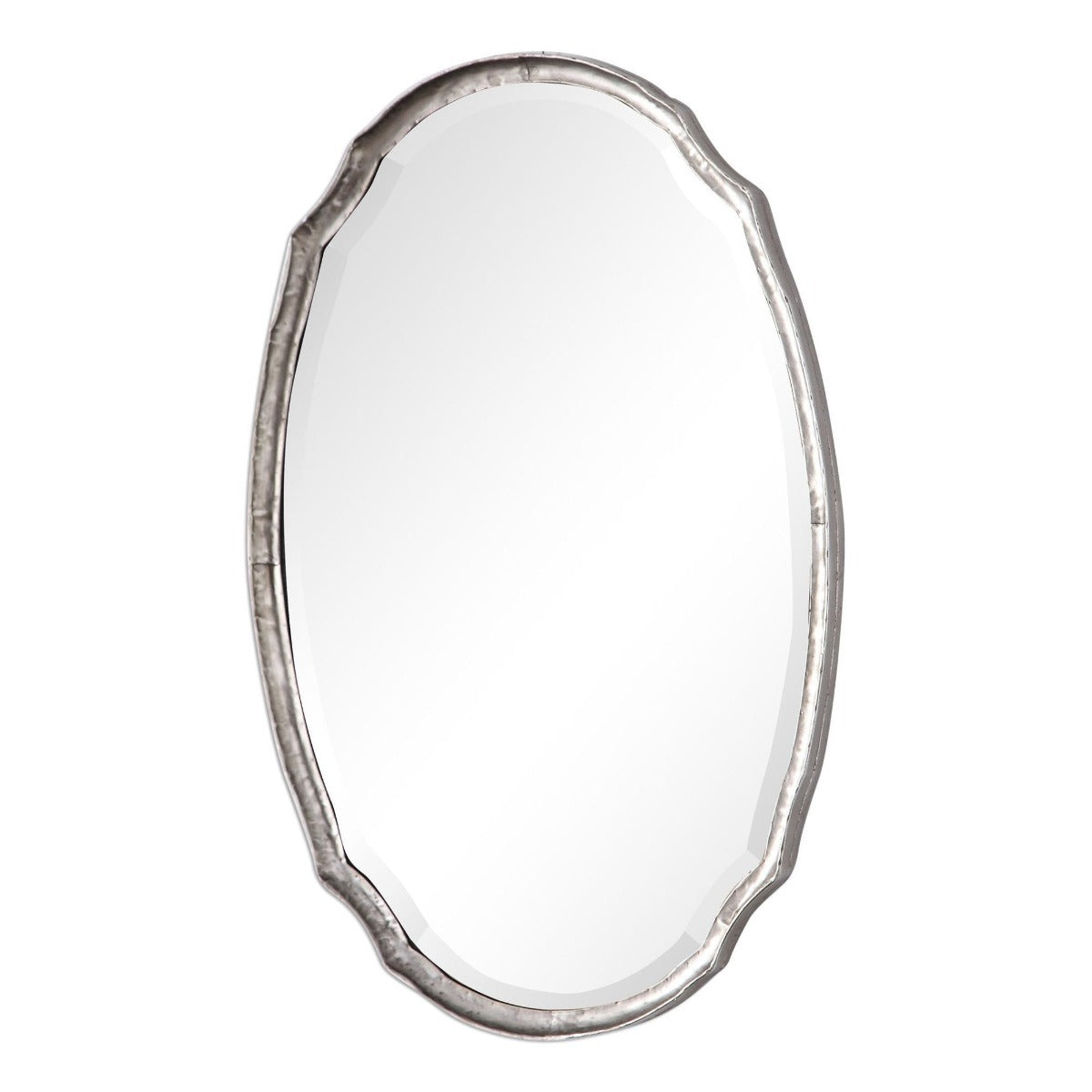 The Keiichi Eleanor Mirror Silver stands out with its oval shape and hammered metal frame, featuring a concave surface finished in metallic silver. With a generous 1.25" bevel, this mirror adds a touch of elegance to any space. Whether hung vertically or horizontally, it is an ideal addition to bathrooms, bedrooms, or entryways. Its timeless design ensures that it fits seamlessly into various decor styles. Also available in charcoal and gold leaf for added versatility.