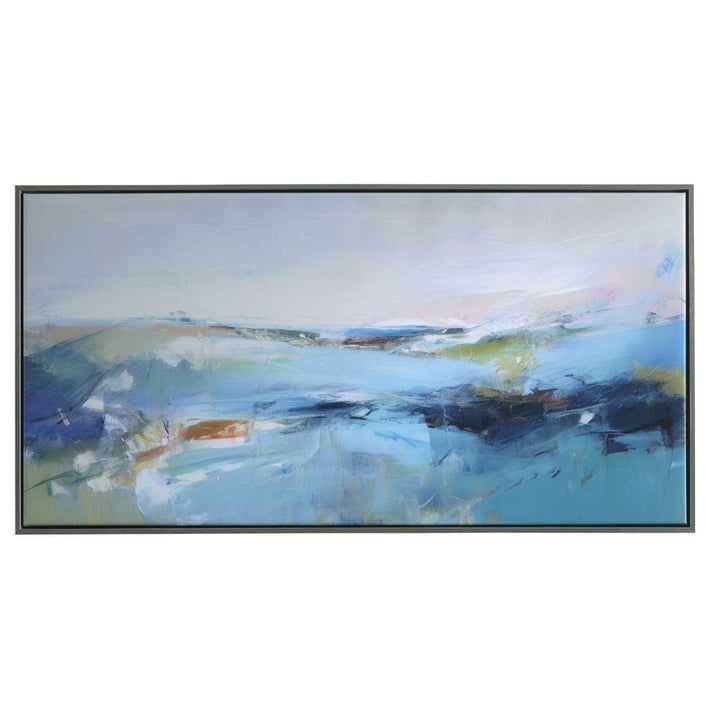Keiichi For the Love of The Sea Framed Canvas captures the raw beauty and emotion of the sea, featuring powerful waves crashing against rugged rocks. Shades of blue-green and grey dominate the canvas, evoking a deep sense of calm and admiration for nature’s force. This giclee canvas is set within a silver, solid wood gallery frame that complements the artwork beautifully. Handcrafted and printed in the USA, it is a testament to fine artistry and craftsmanship. Created by Jay Bryant Ward, this piece is perfect for adding an artistic touch to living spaces, hallways, or offices, enhancing any interior with a serene yet dynamic focal point.