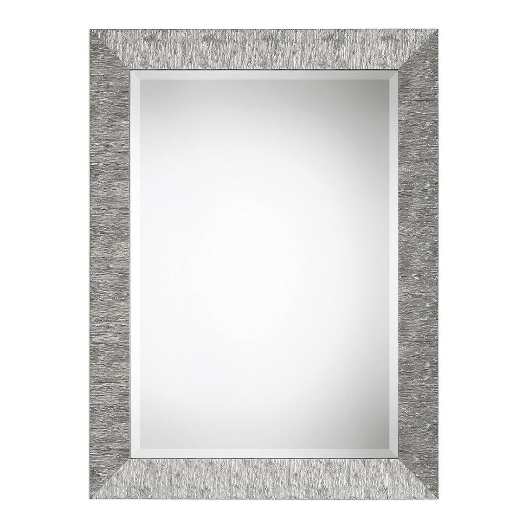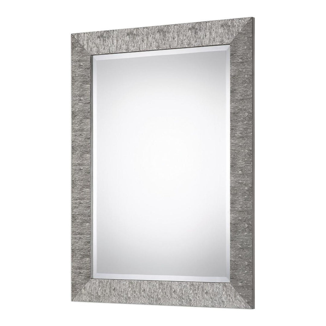 The Keiichi Ira Mirror Metallic Silver is designed to make an impact with its heavily textured frame. Finished in a striking metallic silver, this mirror adds depth and sophistication to any wall. The 1" beveled edge lends an extra touch of refinement, making it ideal for use in living rooms, bedrooms, or entryways. This mirror can be hung either vertically or horizontally, offering flexibility in placement. Also available in a golden champagne finish (W00586), the Ira Mirror showcases Keiichi’s commitment to crafting unique and stylish home accents that blend seamlessly with modern and traditional interiors.
