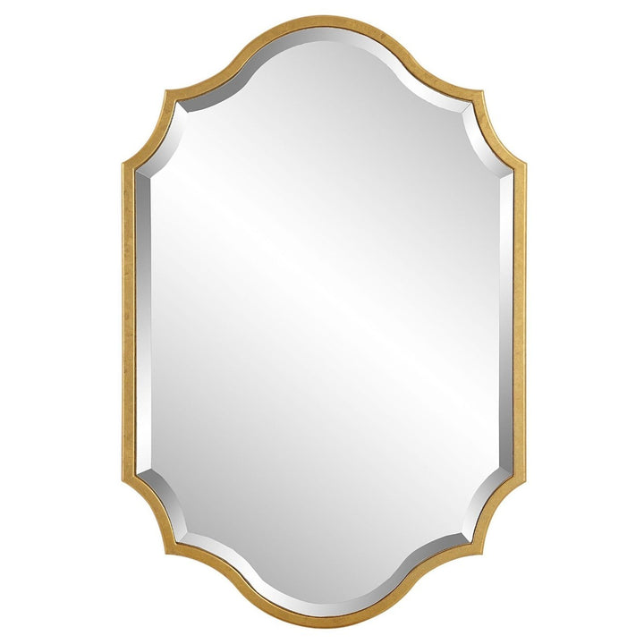 The Keiichi Iris Mirror Gold is an exquisite piece that radiates elegance with its curving metal frame and rich gold leaf finish. The mirror’s graceful arches create a sophisticated silhouette that adds a touch of luxury to foyers, powder rooms, or bedrooms. The mirror is complemented by a 1" bevel, enhancing its refined look. This versatile piece can be hung either vertically or horizontally, making it a flexible addition to any space. The Iris Mirror embodies Keiichi's dedication to producing stylish, high-quality pieces that elevate home interiors. Bring a touch of elegance and opulence to your space with this stunning mirror.