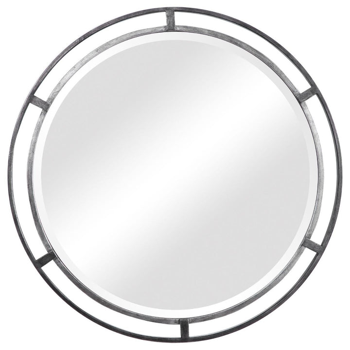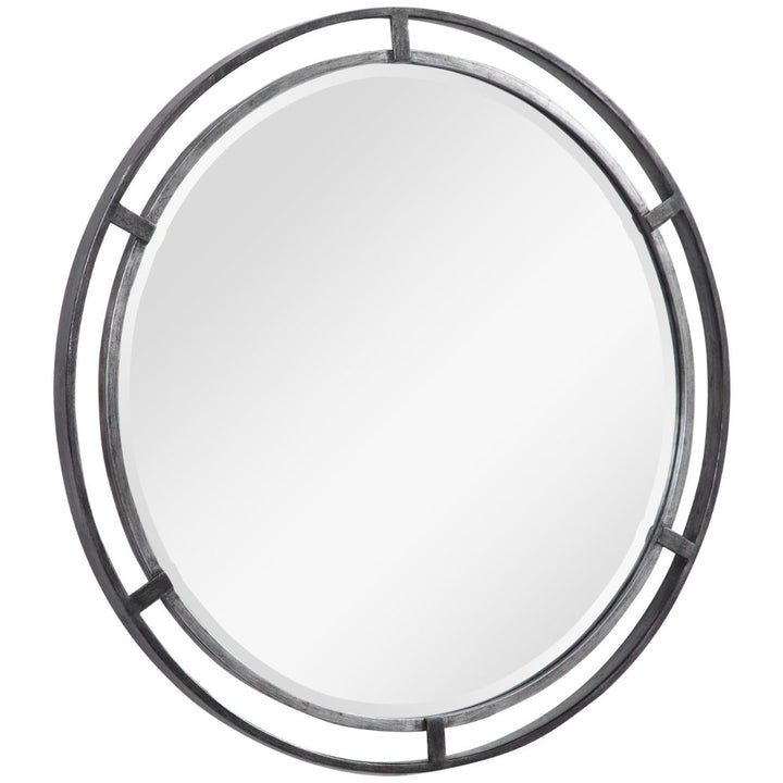The Keiichi Jasper Mirror Dark Silver is a statement piece, combining modern design with subtle elegance. Crafted from iron, this 30" mirror features a unique 3-dimensional frame that adds depth and interest to any wall. The outer frame, finished in a rich dark silver, is connected to the center, which showcases a complementary lighter silver. A 1" bevel completes the sophisticated look, making it perfect for living rooms, entryways, or bedrooms. The Jasper Mirror embodies Keiichi's dedication to high-quality craftsmanship and distinctive design, offering a blend of functionality and visual appeal. This mirror can seamlessly enhance both contemporary and classic interiors, adding a touch of refined luxury to your space.