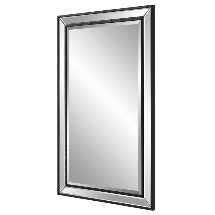 The Keiichi Lines Mirror Black is a modern masterpiece that features beveled mirror panels, accented with an organic textured design in rich black that surrounds the frame. The inner mirror is designed with a .75" bevel, adding a touch of sophistication and depth. Ideal for any room in the home, this elegant mirror can be hung either vertically or horizontally, providing versatility in placement. The sleek design and striking black finish make it a standout piece that complements both contemporary and traditional interiors. This mirror is also available in a gold finish for those seeking a different look. The Keiichi brand’s attention to detail and high-quality craftsmanship is evident in the Lines Mirror Black, ensuring that it not only serves as a practical accessory but also as a decorative focal point that enhances the overall aesthetic of your space.
