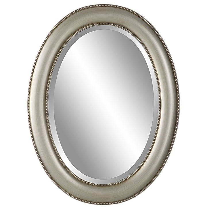 The Keiichi Matthew Mirror Antique Silver brings a timeless elegance to your space with its oval frame adorned with beaded details. Finished in a metallic silver with subtle brown antiquing, this mirror adds a touch of vintage-inspired charm to any room. The 1" bevel provides depth and enhances the overall sophistication of the piece. Perfect for use in entryways, bedrooms, or bathrooms, the mirror can be hung either vertically or horizontally to suit your design needs. This mirror is also available in bronze and white finishes, offering versatile options for different interior styles. The Keiichi Matthew Mirror Antique Silver embodies the brand’s focus on high-quality craftsmanship, making it a durable and stylish addition to your home. Whether you’re aiming for a modern or traditional look, this mirror adds an elegant focal point that elevates the ambiance of your living space, reflecting light and creating an open, inviting feel.