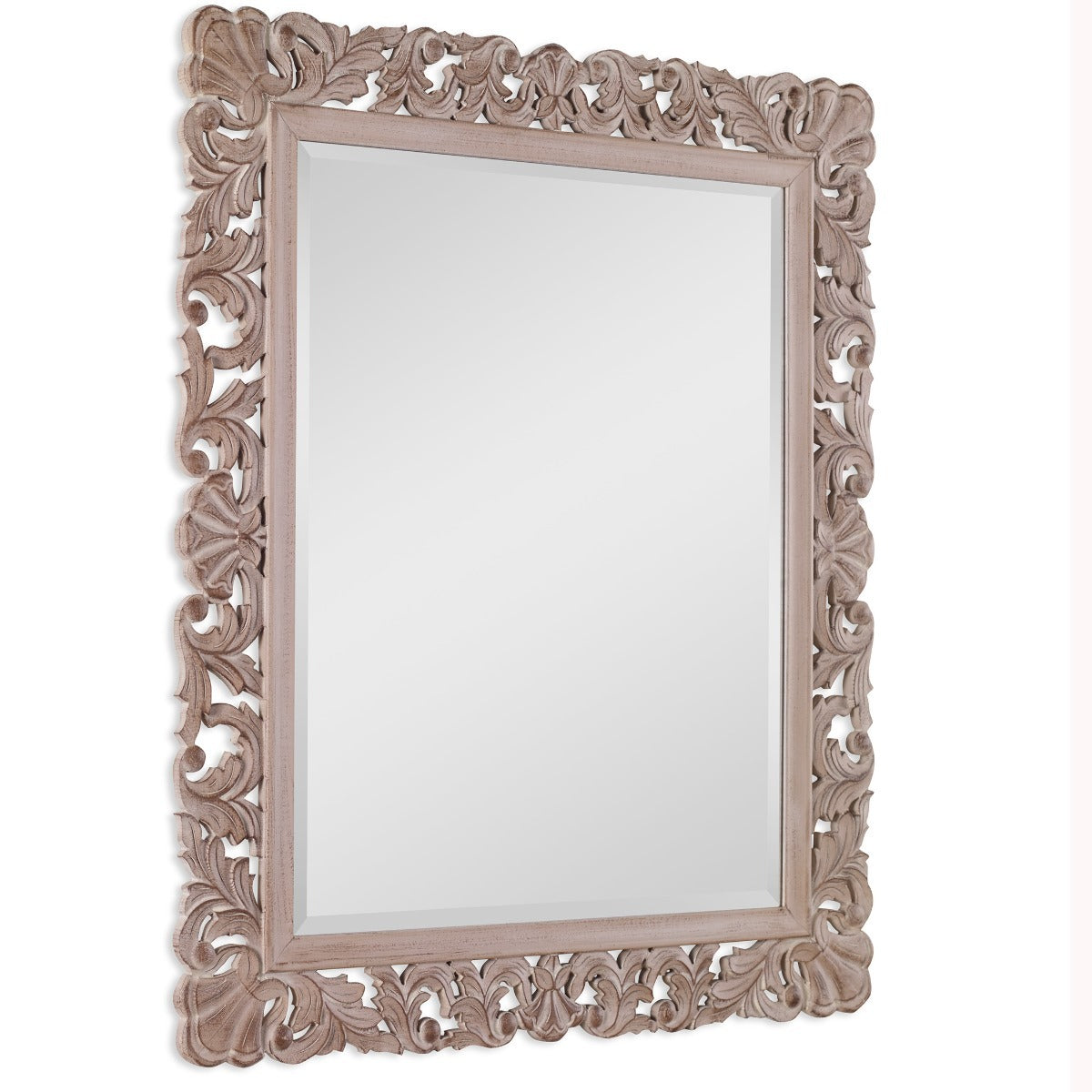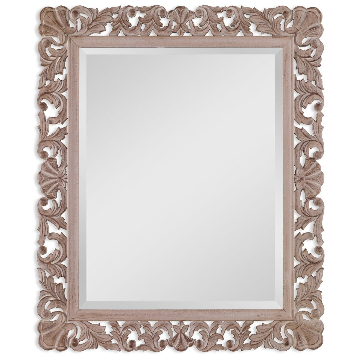 The Keiichi Ornate Wooden Mirror brings elegance and classic charm to your living space with its intricately detailed frame. Crafted with a natural finish, this mirror showcases the beauty of wood with a design that stands out in any room. The 1" beveled glass enhances the overall sophistication, making it an excellent choice for entryways, living rooms, or bedrooms. This versatile mirror can be hung either vertically or horizontally to suit your space and design preferences. Its high-quality craftsmanship ensures durability and timeless appeal, fitting seamlessly into both traditional and modern settings. The Keiichi Ornate Wooden Mirror’s rich texture and natural tones add warmth to your home, reflecting light beautifully to create a sense of openness and elegance. This piece embodies the Keiichi brand’s commitment to blending quality, style, and function, making it a standout addition to your home décor.