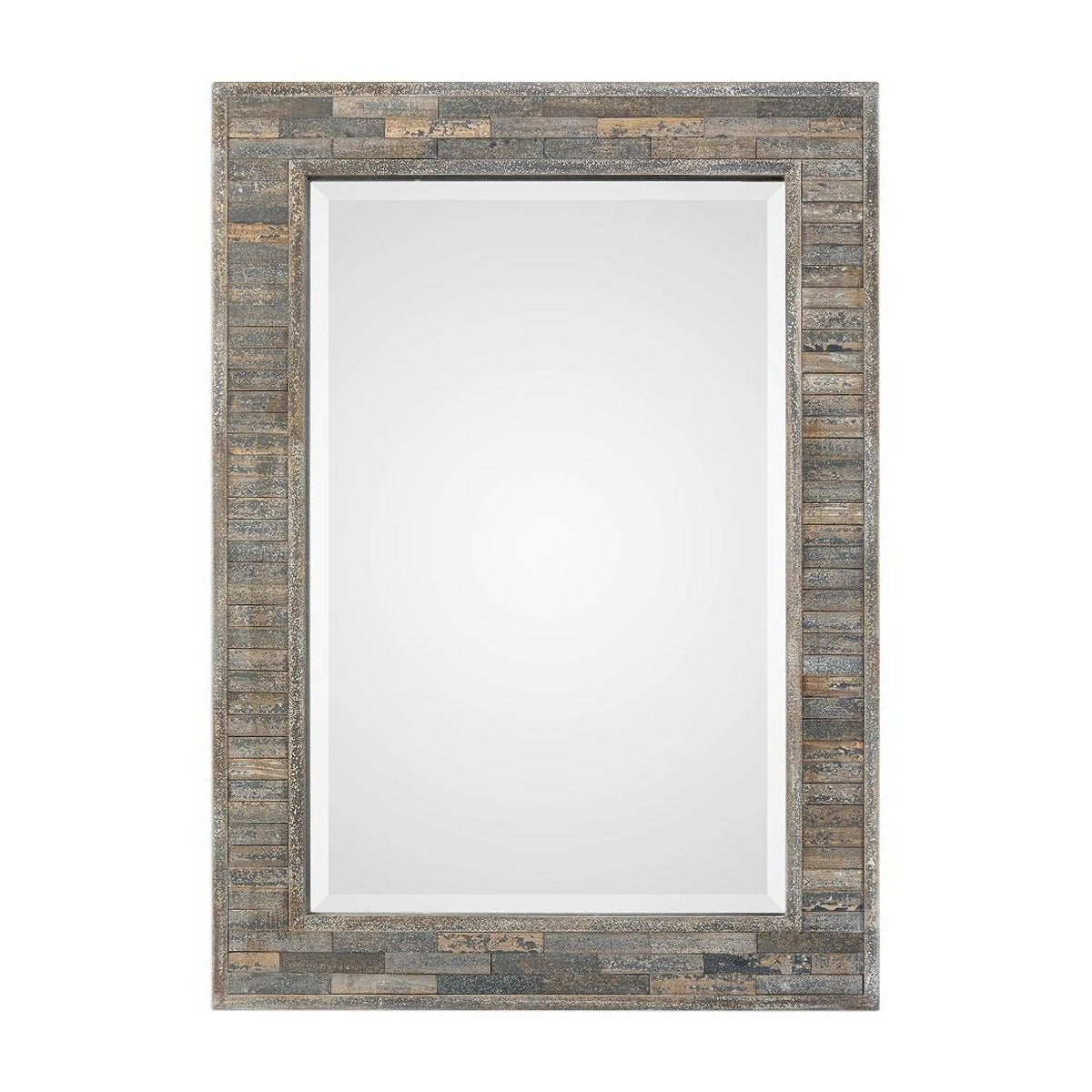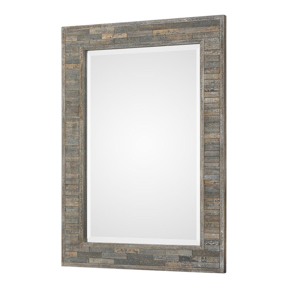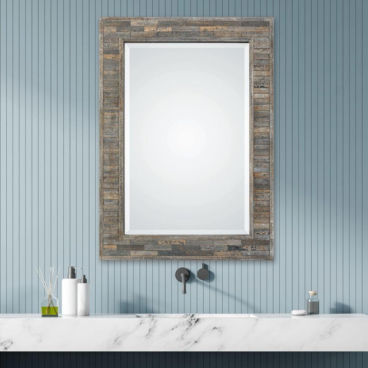 Keiichi Slate Mirror is a unique and rustic addition to any home, designed to add texture and character to your space. This mirror features a frame made from individual strips of weathered pine, each finished in varying shades of earthy tones for a natural and authentic appearance. The dark slate distressing enhances the raw, organic feel of the piece, making it an excellent choice for farmhouse, bohemian, or eclectic interior styles. Due to the natural characteristics of wood and the hand-applied finish, each mirror is slightly unique, ensuring a one-of-a-kind accent for your room. This mirror is perfect for use in an entryway, living room, or bedroom, where it can provide both a functional reflective surface and a beautiful focal point. The Keiichi Slate Mirror offers a warm, inviting atmosphere while showcasing expert craftsmanship and attention to detail, adding timeless charm to your décor.