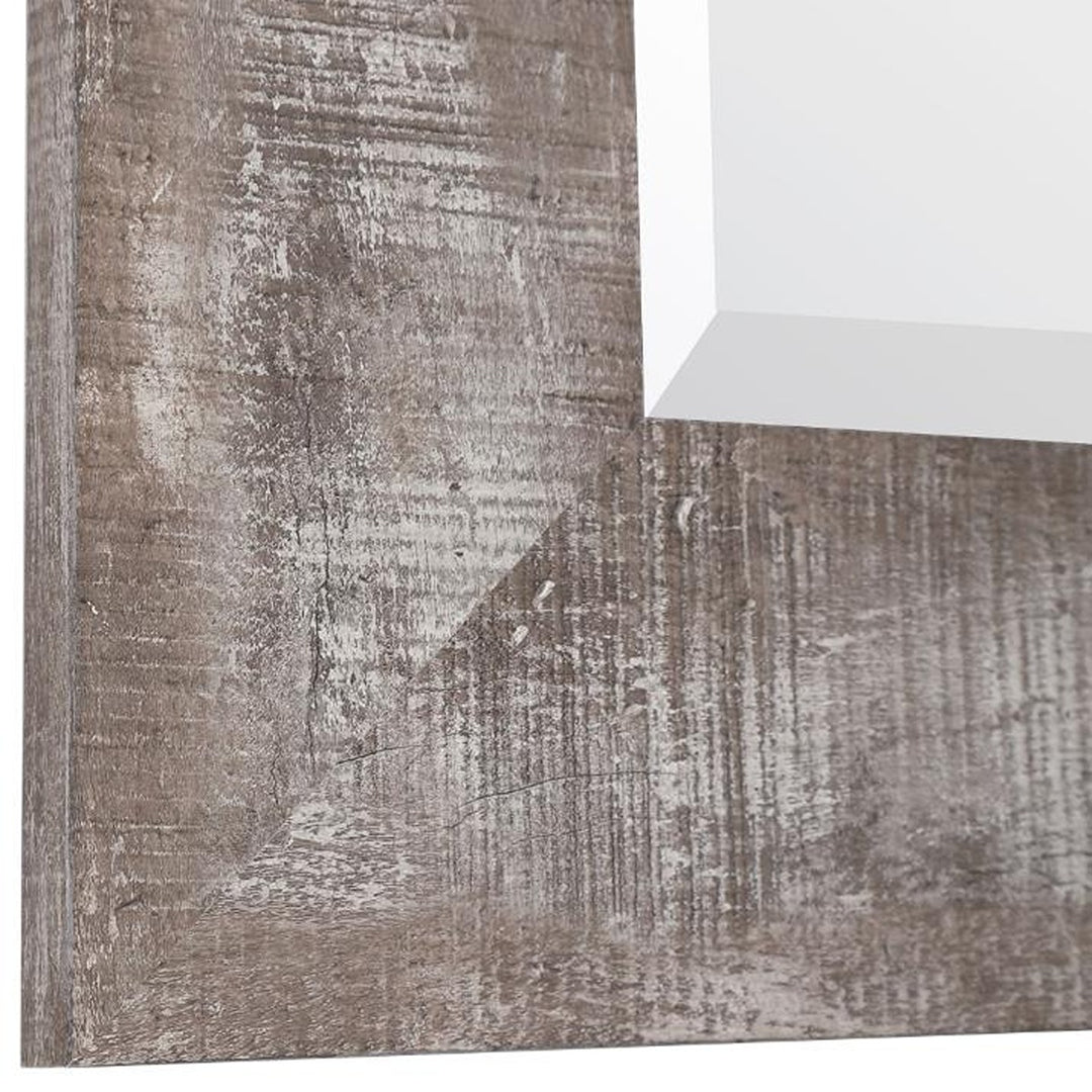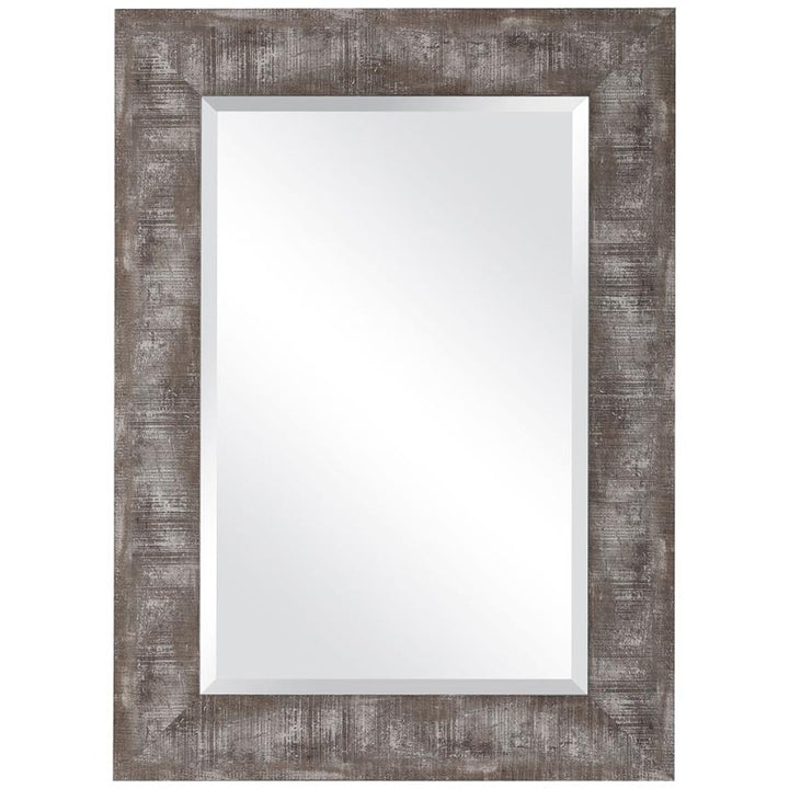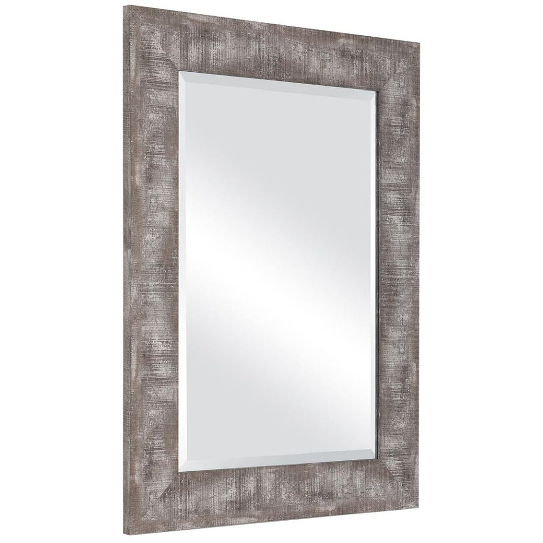 Keiichi Wood Grain Grey Mirror adds rustic elegance to your home with its natural wood grain appearance, perfectly finished in a light wood tone with artful distressing. This mirror's rustic frame lends itself well to a variety of interior styles, from traditional to modern farmhouse. The 1" beveled edge on the reflective surface adds a subtle touch of sophistication and depth, enhancing its visual appeal. Its versatile design allows for vertical or horizontal hanging, making it easy to fit in hallways, bedrooms, or living rooms. The sturdy construction ensures this piece will be a lasting addition to your home. Ideal for creating the illusion of more space and enhancing the light in any room, the Keiichi Wood Grain Grey Mirror is both functional and stylish. Its natural finish brings warmth to your space, making it a must-have for anyone looking to add a touch of timeless charm to their décor.