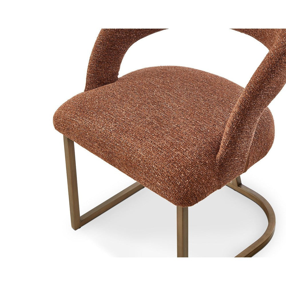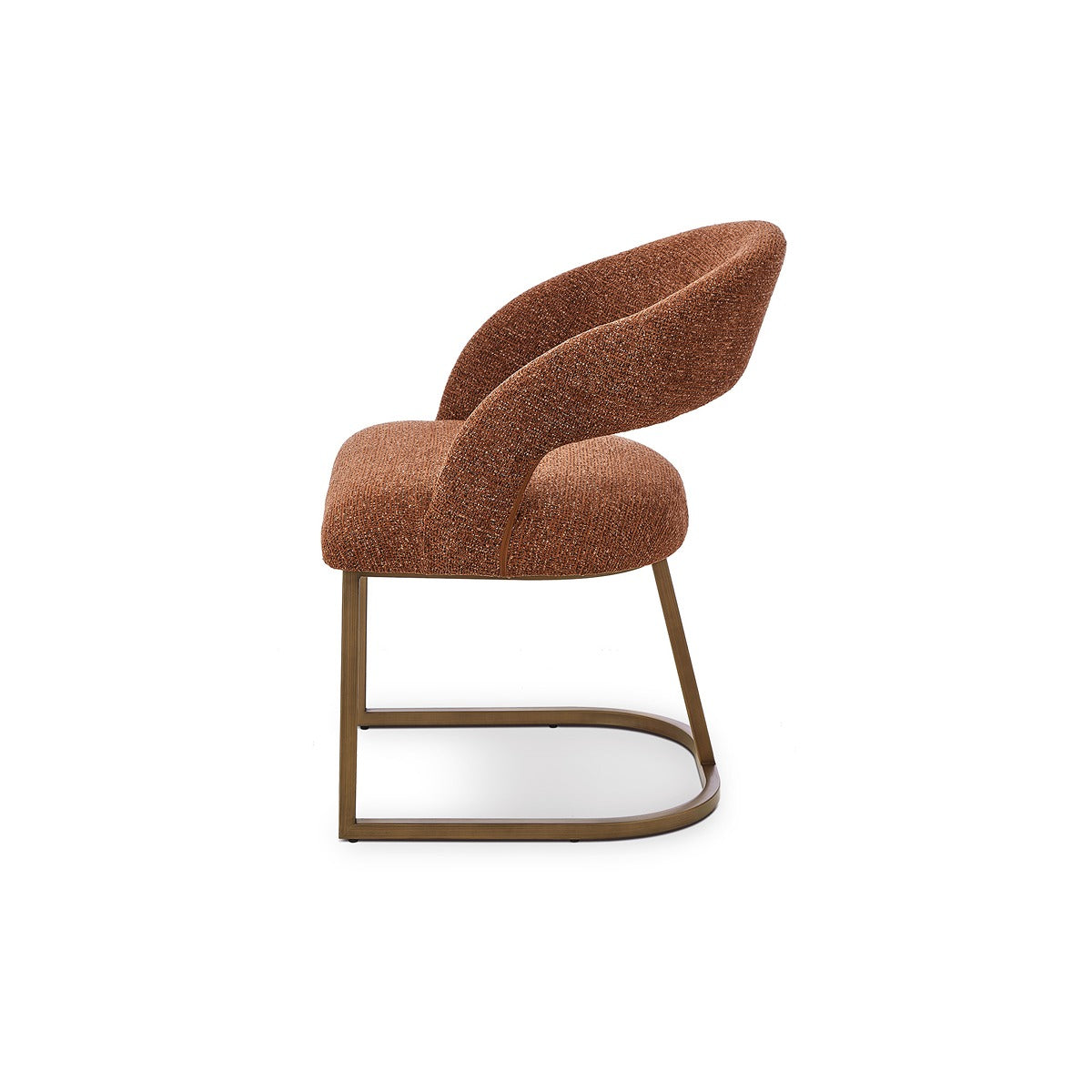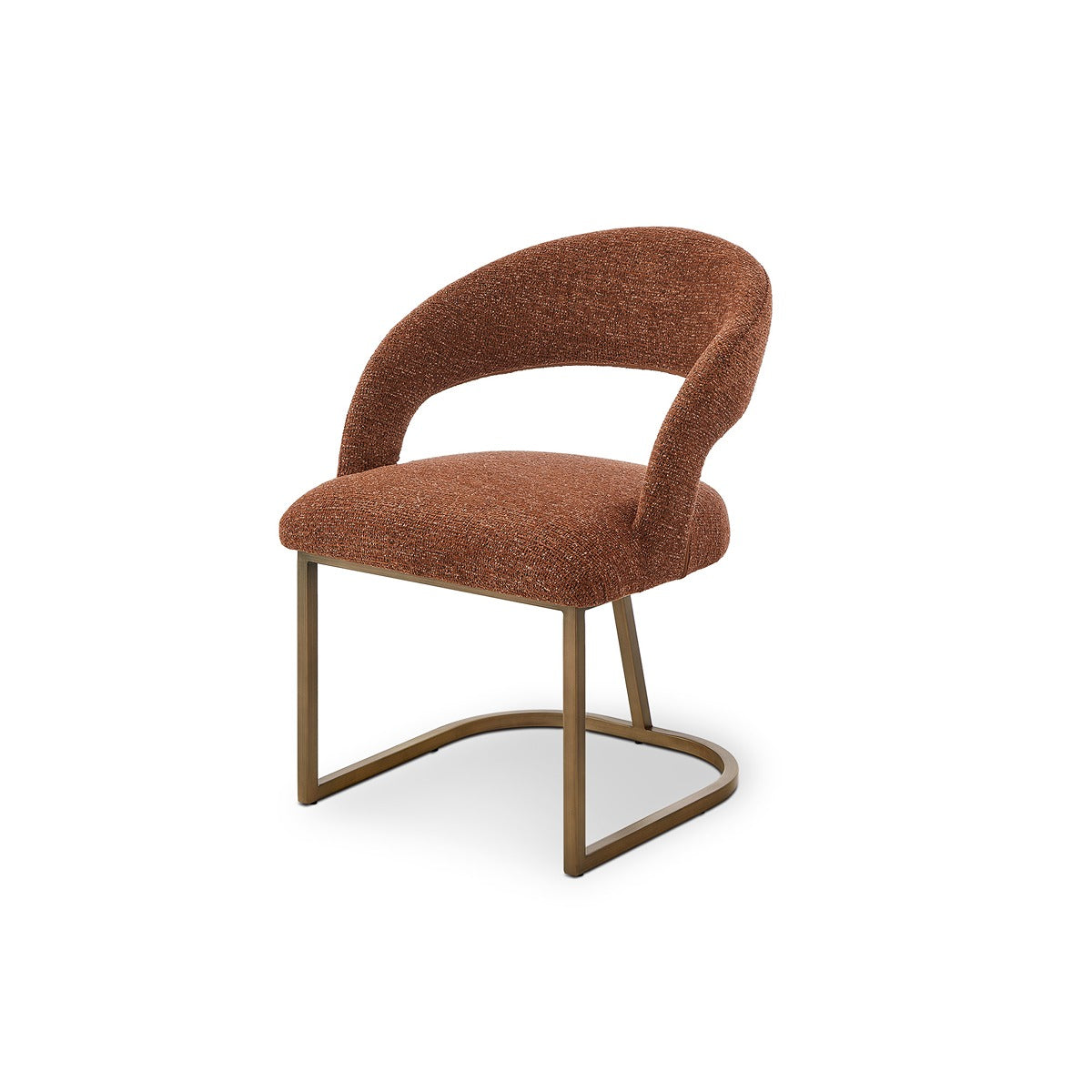 Distinguished by its rich Chestnut Red hue and robust Bronze Steel frame, the Alfie Dining Chair combines aesthetic allure with essential safety features. Crafted for both hospitality and residential settings, its intriguing silhouette captivates with a uniquely contoured backrest and elegantly tapered legs. \n \nWhat truly sets the Alfie apart is its adherence to the stringent Crib 5 standard, ensuring compliance with BS7176 fire safety regulations. This makes it an ideal choice for venues requiring reliable fire-resistant furnishings without compromising on style. The chair's plush upholstery not only harmonises with diverse interiors but also prioritises safety, offering peace of mind for both guests and residents alike. \n \nFeatures: \nCrib 5 - BS7176 fire safety standard Chestnut Red upholstery. Bronze Steel Legs. \n \nAlso Available in Megan Pebble (CR) and Talbot Freckle (CR)