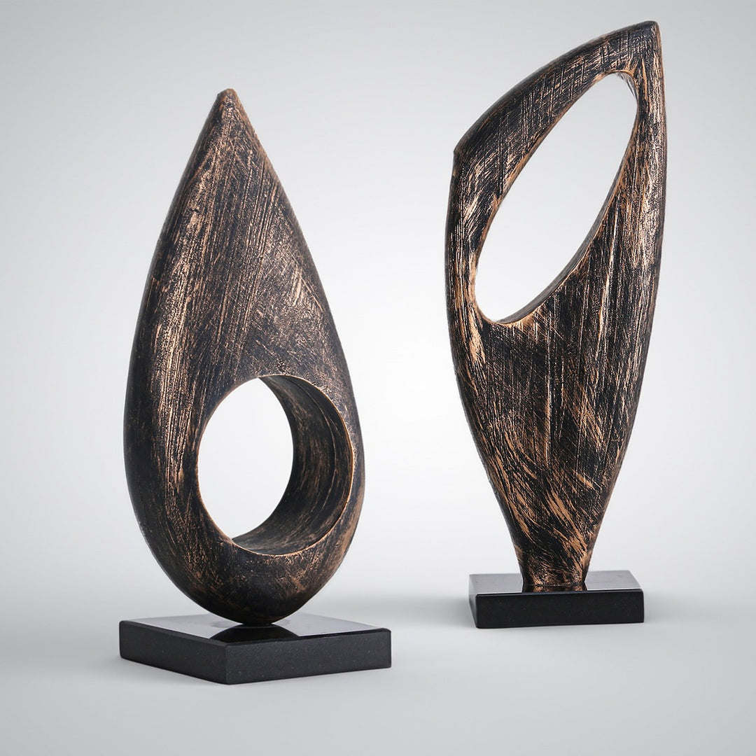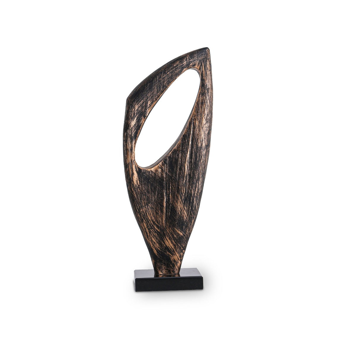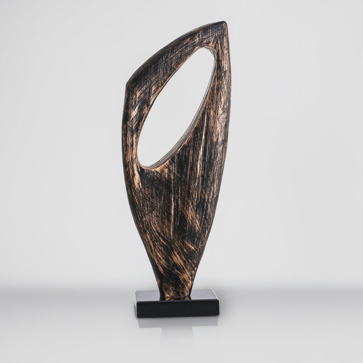 Discover a captivating blend of antique bronze and black marble in this striking sculpture. Its geometric abstraction, with a captivating cut-out design, rests elegantly atop a marble base. Ideal for living room lounges or studies, it harmonises effortlessly in all interior projects.