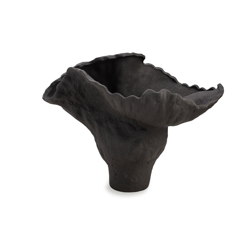 Unleash the allure with the Arvasia Ceramic Vase, an embodiment of sophistication and artistry. Crafted in a profound black hue, this large and organic wide-topped masterpiece defies convention, offering a canvas for your imagination to roam freely.The Arvasia is an abstract vase that is at the pinnacle of modern elegance, its wide opening beckons admiration while providing an ideal stage for bold floral arrangements or the minimalist beauty of solitary blooms.Intricately sculpted, the ceramic surface boasts a tactile allure, inviting exploration with every touch. The grandeur of its size is balanced by the subtlety of its details, making it a statement piece that effortlessly blends into any space, commanding attention with its unique silhouette.Invite the spirit of artistic rebellion into your living spaces, as the Arvasia Ceramic Vase transforms your surroundings with its symbol of creativity, where form and function converge in a harmonious celebration of the extraordinary.Features:Black Ceramic