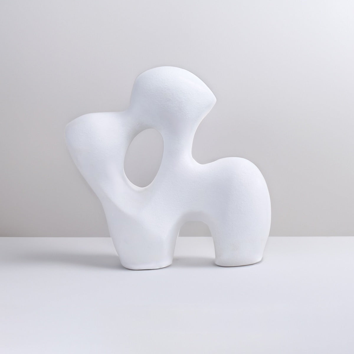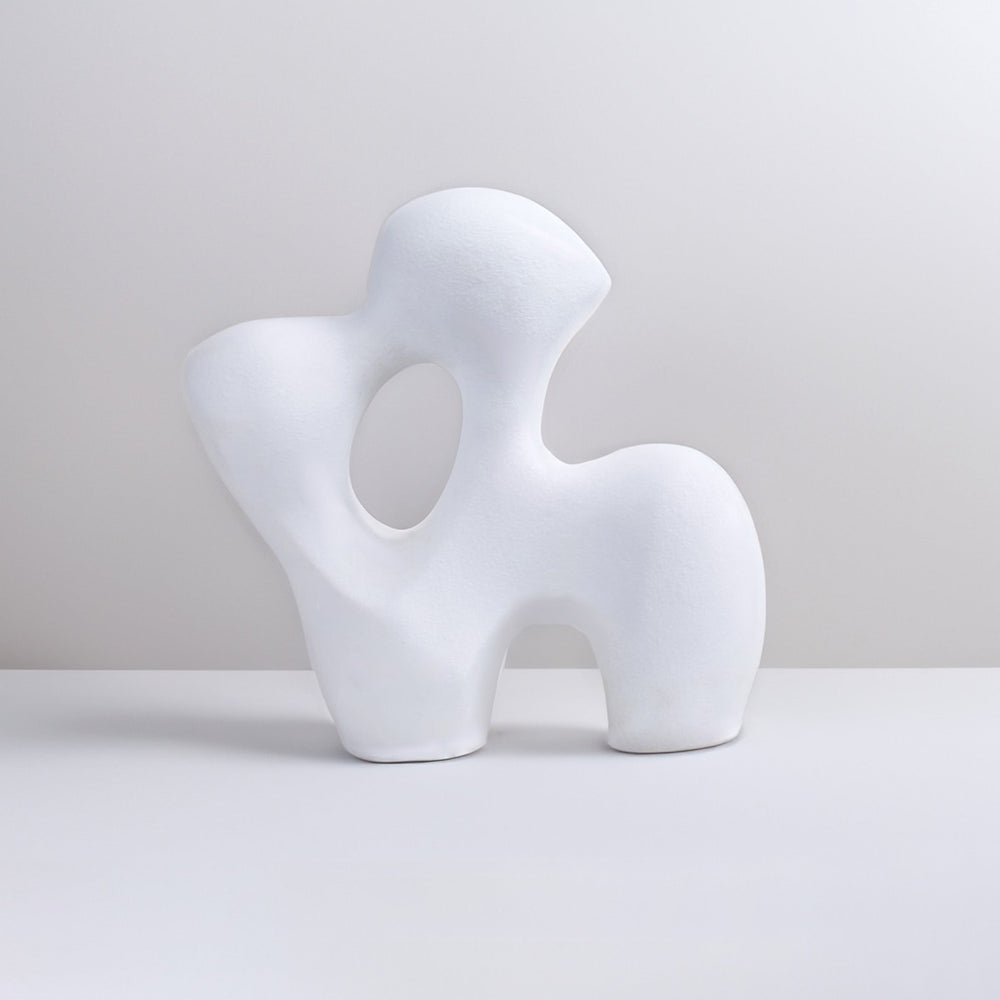 Enter the realm of sophistication with Ava, a captivating white resin sculpture. Its mesmerising geometric abstraction harmonises playful intrigue with timeless elegance.