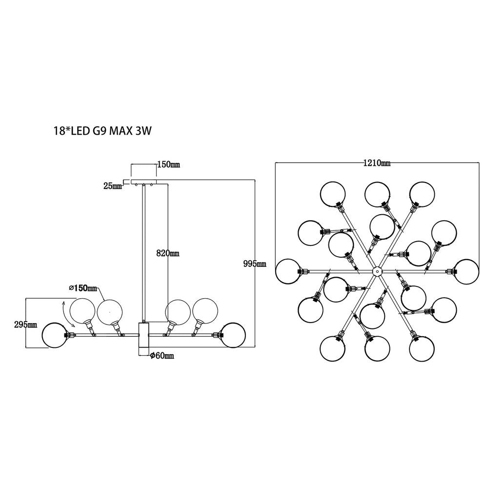 The Baldwin Ceiling Lamp boasts beautiful antique brass detailing and will add a touch of unique elegance to any living interior. This ceiling lamp features a globe design made from clear glass. Light bulb is not included. Requires 18 x LED G9 MAX 3W.