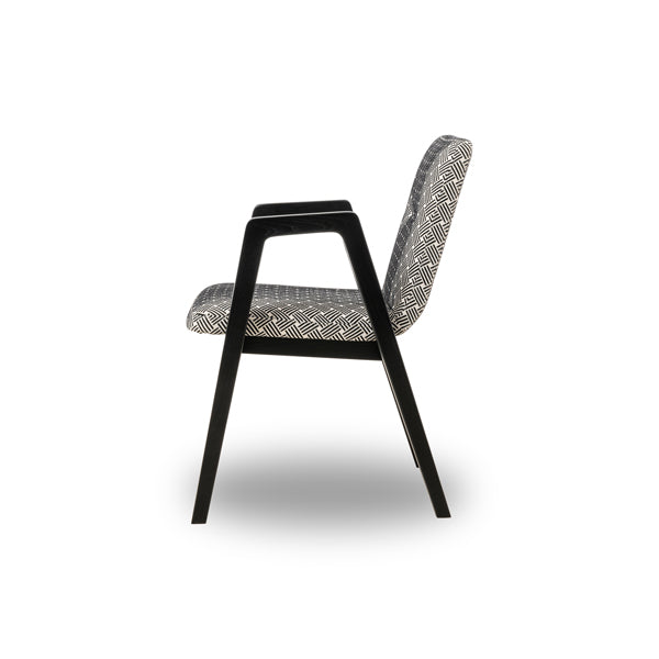 Spike Black, Solid Ash legs Elegantly upholstered in a luxurious Spike Black fabric, the Benson adds instant class and contemporary chic to the home. Supported by a sturdy solid wood frame with trestle arms, the Benson offers sumptuous comfort for your guests with its padded seat and supportive backrest.