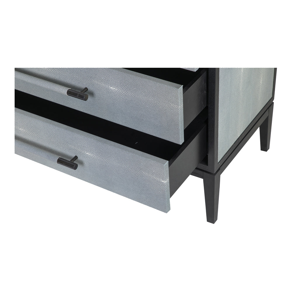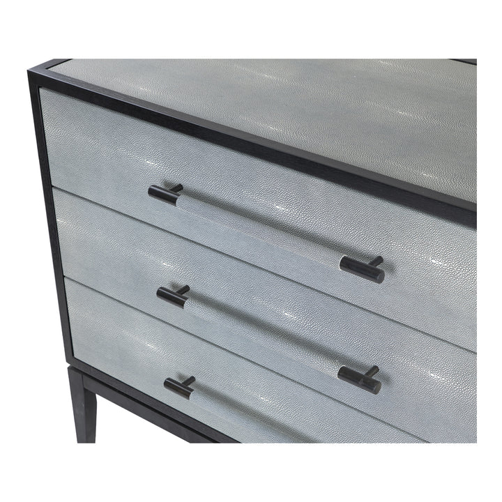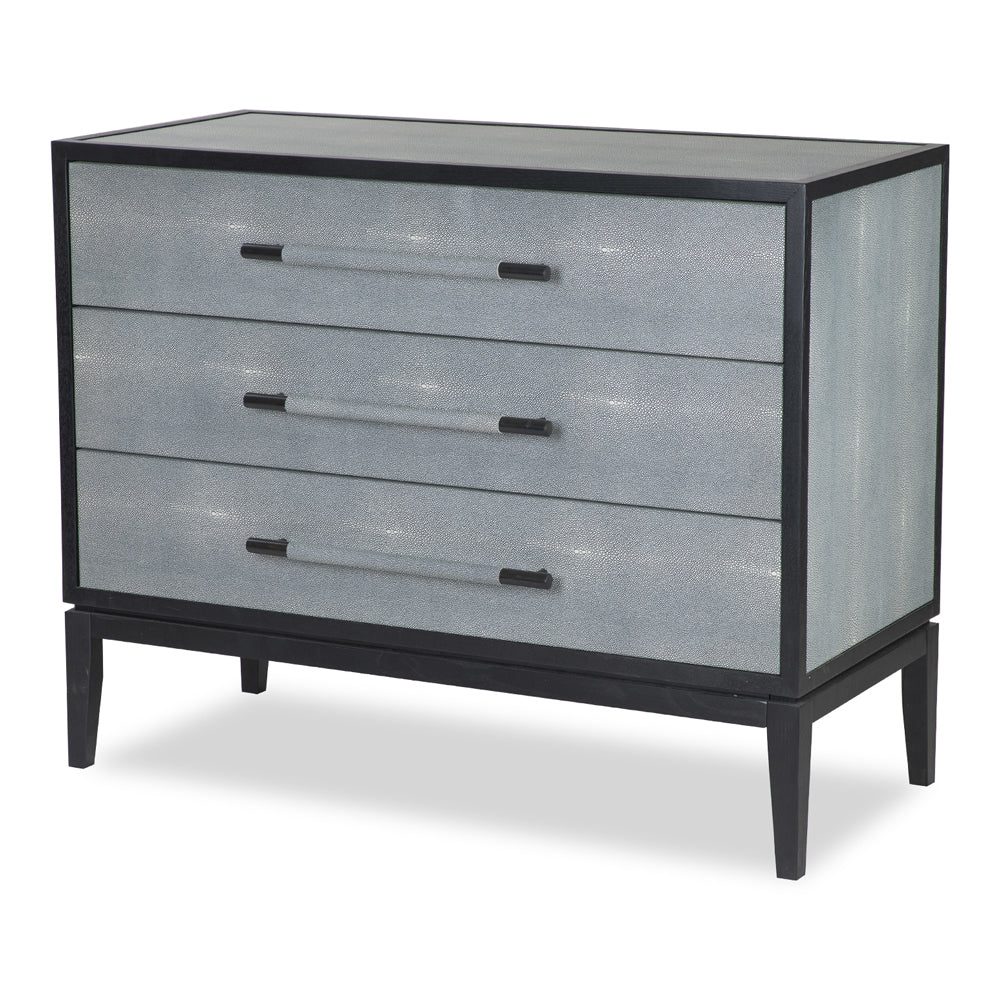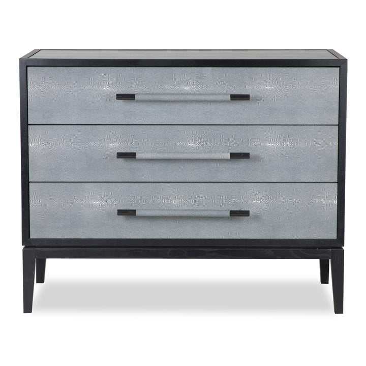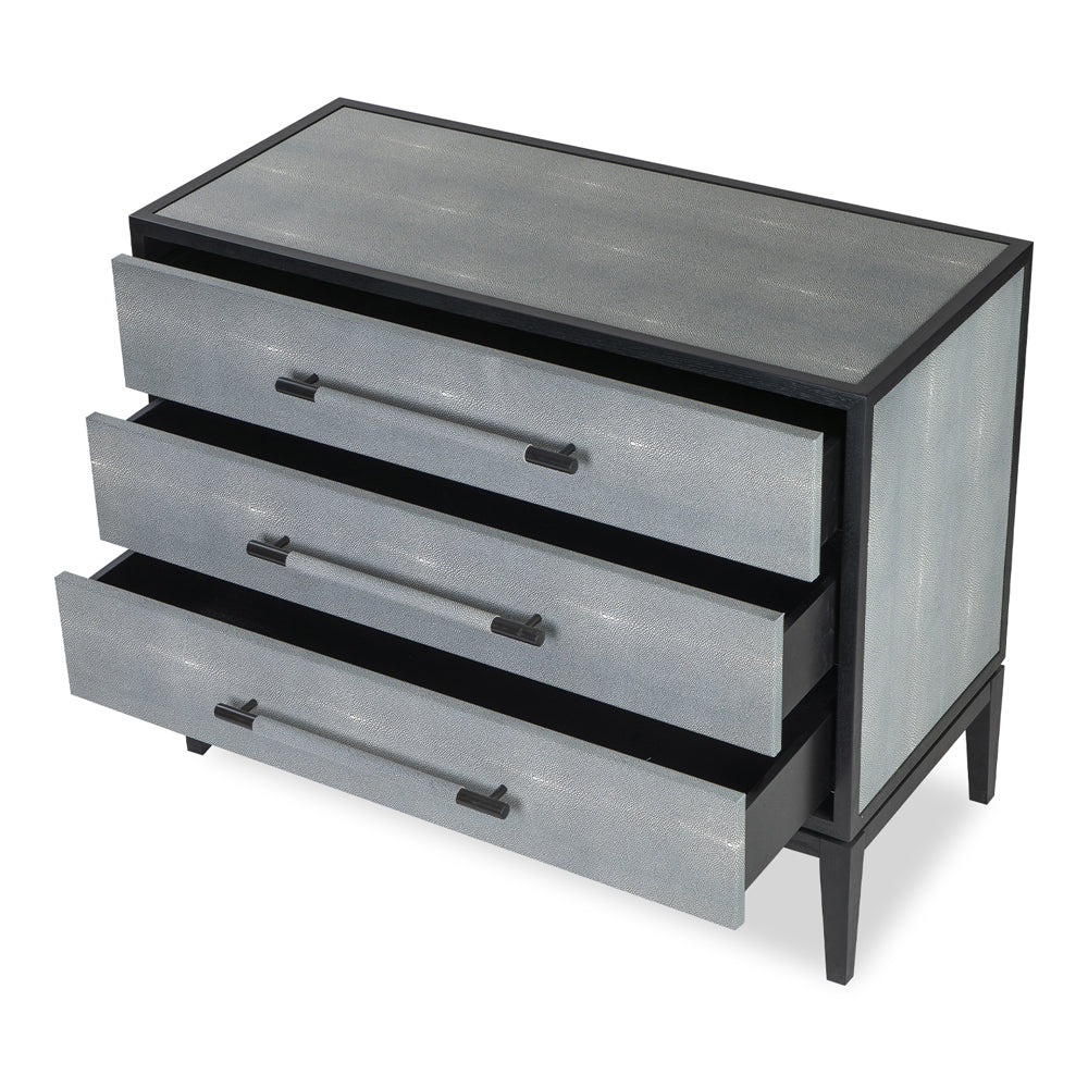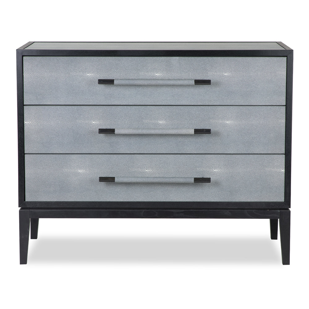 Keep your home neat and tidy with this stylish Bologna chest of drawers from Liang and Eimil. This smart chest of three drawers is finished in faux grey shagreen and has a black ash veneer. Smart metal handles add the finishing touch.