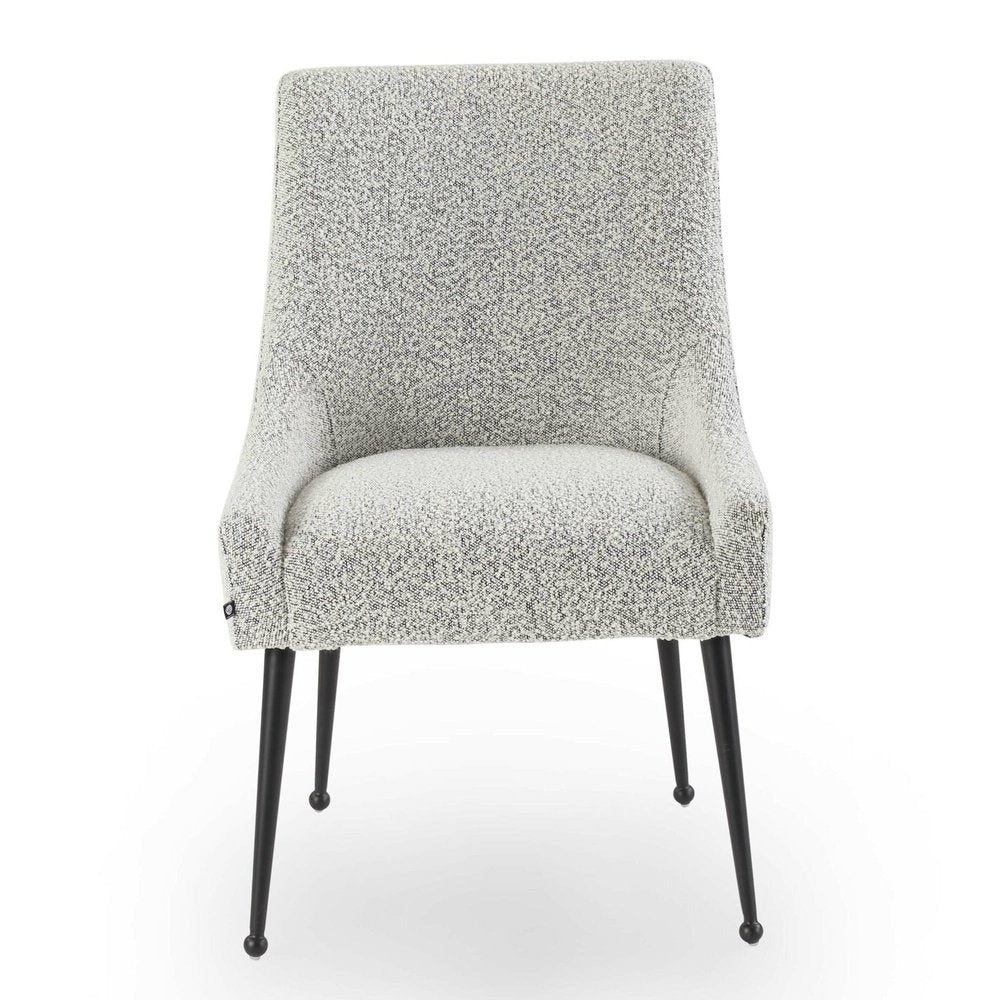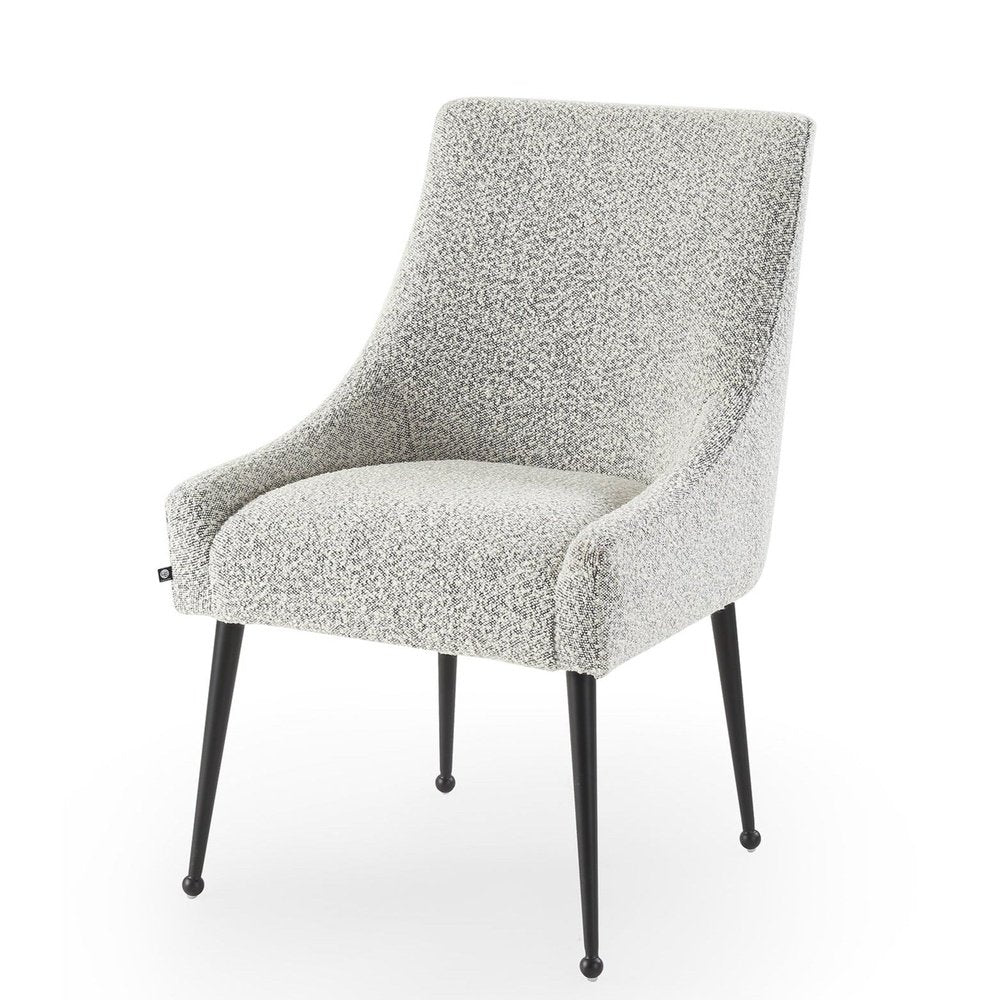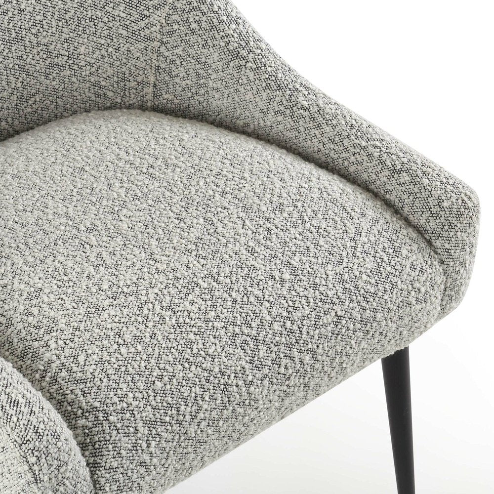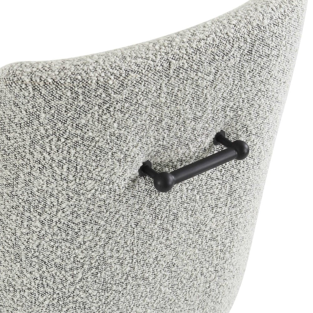 Boucle Whisk fabric, iron legs & handle in matt back Upholstered in a sumptuously soft velvet, the Cohen offers an alluring lustre and is available in a range of selected shades . Tapered metal legs are lovingly finished in beautiful matt black, as well as a convenient handle in the backrest which gives the chair a practical and appealing feature. (Legs require installation)