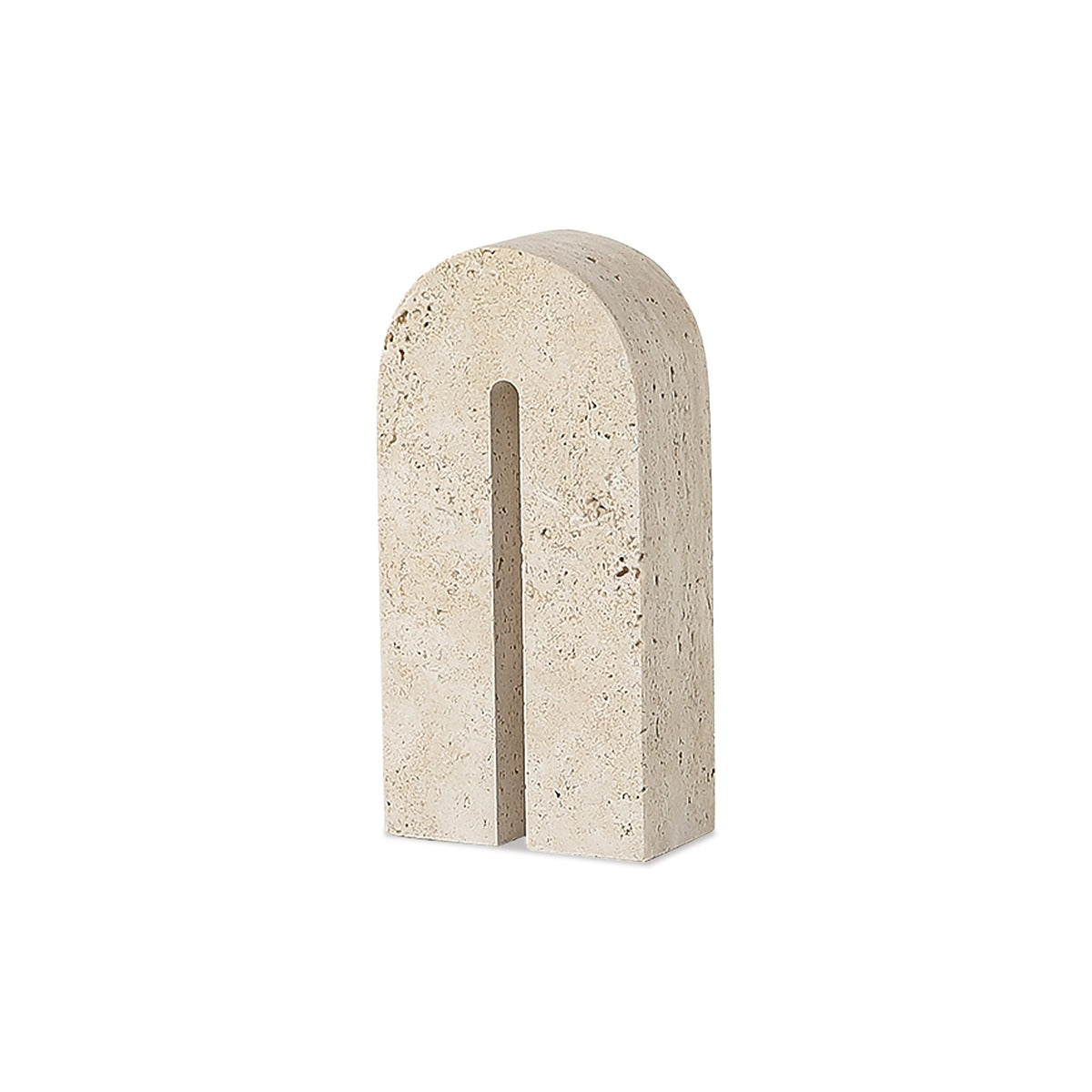 The Dolmi Travertine Sculpture is a minimalist masterpiece, designed to elevate any space with its refined elegance. Its arch shape and natural travertine material embody both resilience and sophistication, making it a versatile accent piece for any decor. Whether used alone or paired with its smaller counterpart, the Dolmi Sculpture adds a timeless touch of artistry to any room.\n\nFeatures: Beige Travertine Marble Sculpture