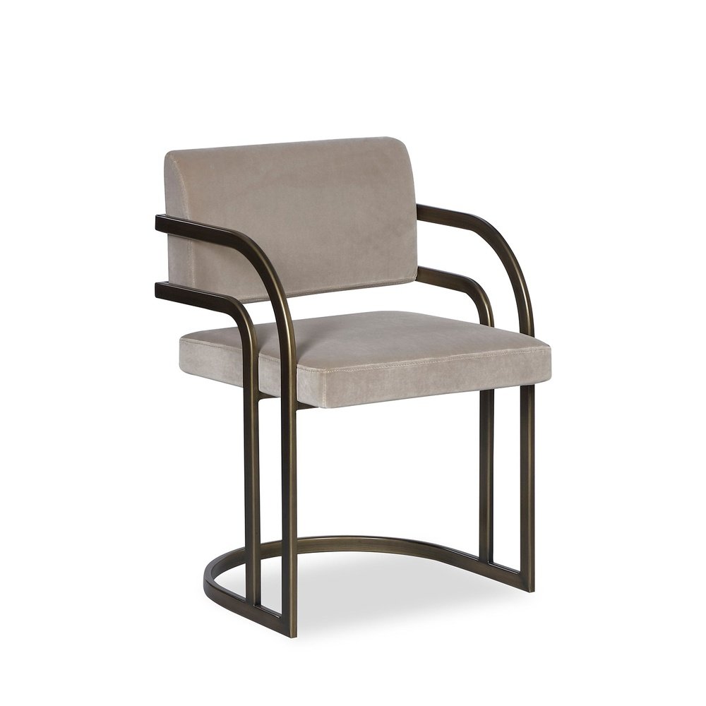 Boasting a sleek metal frame, the Dylan Dining Chair will accentuate your dining room in the most gracious manner. Upholstered in a luxurious Gainsborough Mink Velvet and finished with antique bronze metal legs, the Dylan will provide ultimate comfort with its deep padded cushions for your guests.
