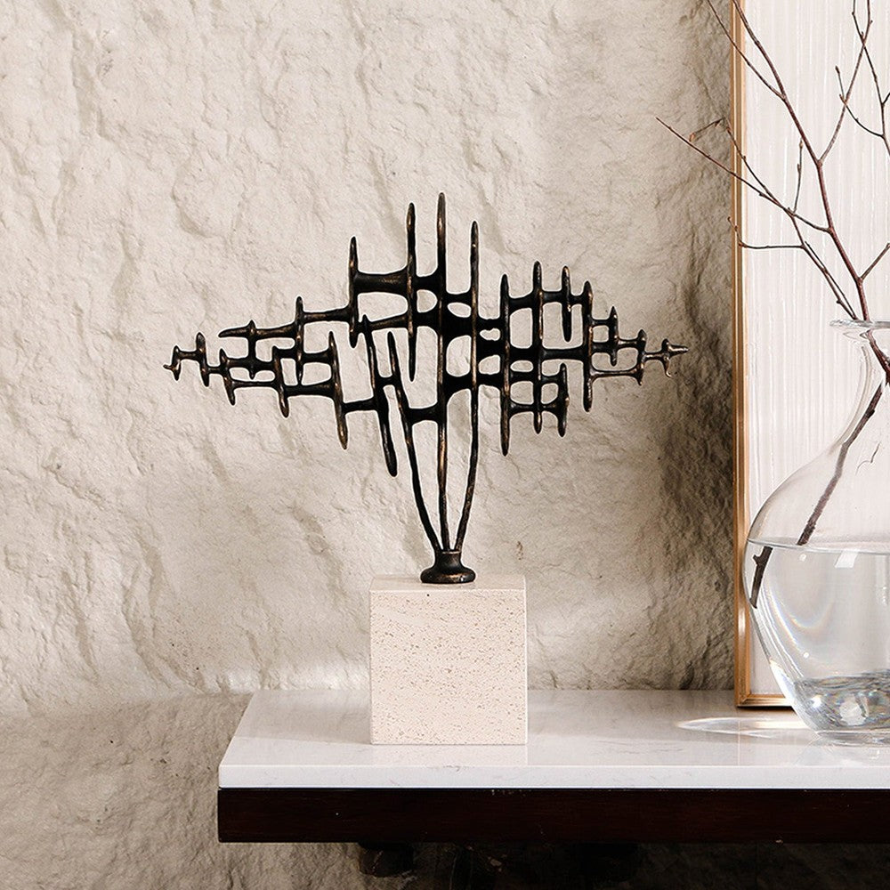 Echo Crest Marble Sculpture - Dark Bronze & Beige