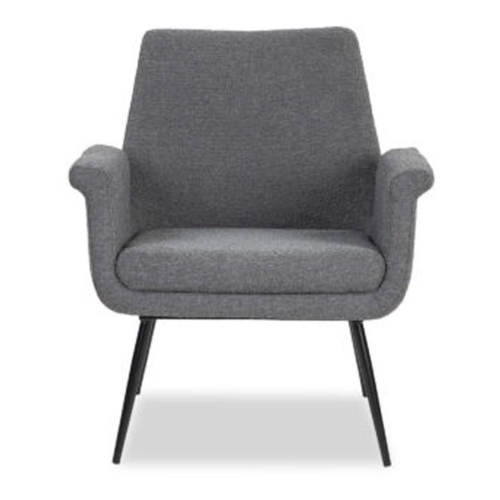 The grey boucle upholstery will complement lighter tones, pastel shades and neutral palettes, with the material adding texture and interest. The matt black coated steel legs offer a wide base to ensure this chair is practical in addition to being a great design statement