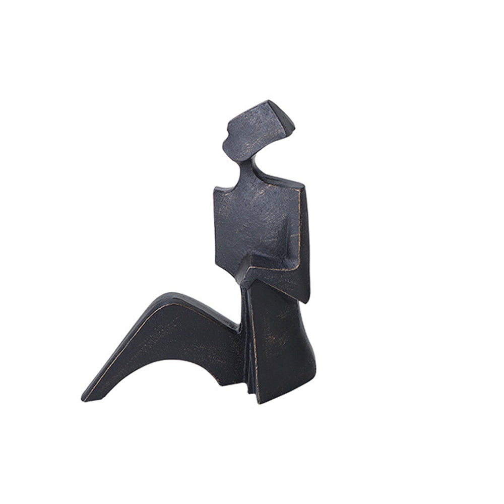 This enigmatic Liang & Eimil Isla sitting lady black figurine sculpture will bring instant intrigue and interest to your home. Both unique and contemporary, it will be the perfect addition to a shelf or mantel in a modern home. The angular black sculpture depicts a woman sitting, clutching one knee to her chest with her head turned away as if surveying a scene.
