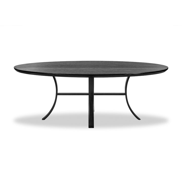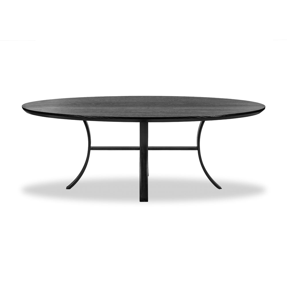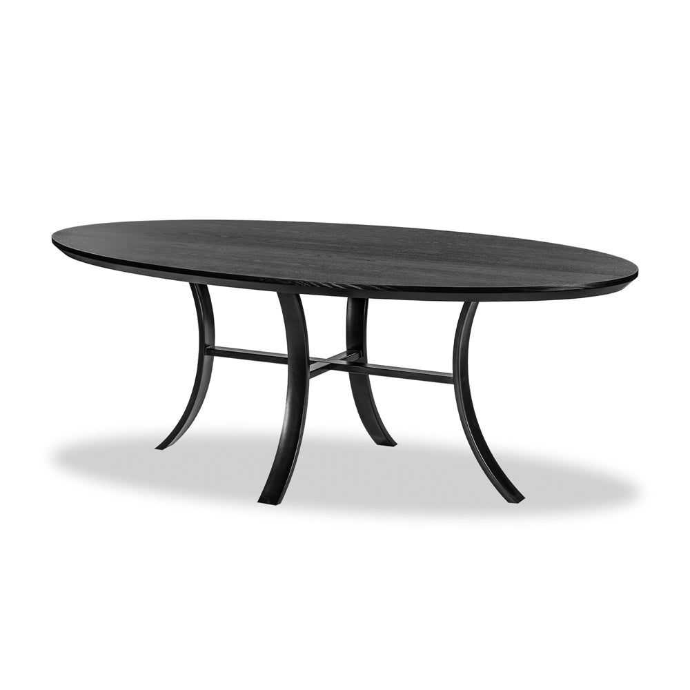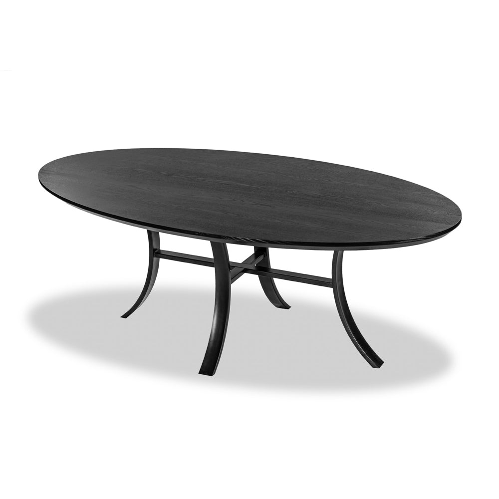 The Isola dining table is a lovely piece that is ideal for a home with a preference for monochrome or minimalist styling. It is a contemporary dining table in a black ash veneer finish. Oval in shape, its stylish curved legs are bound together by intersecting supports.