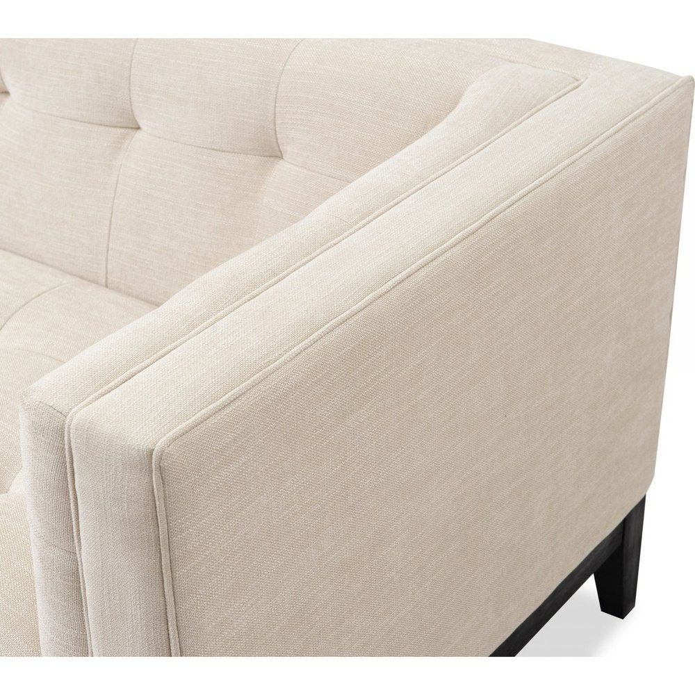 A button effect pattern on the back and arms of the sofa breathes life into this stunning furniture, and the seating contrasts perfectly with the wenge colour base and legs. It is neutral enough to blend in with any existing colour scheme, and it would sit well in a living room, conservatory or large hallway.