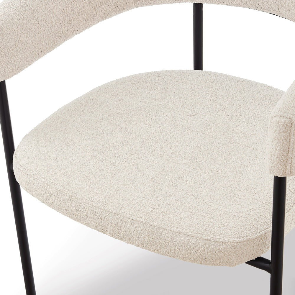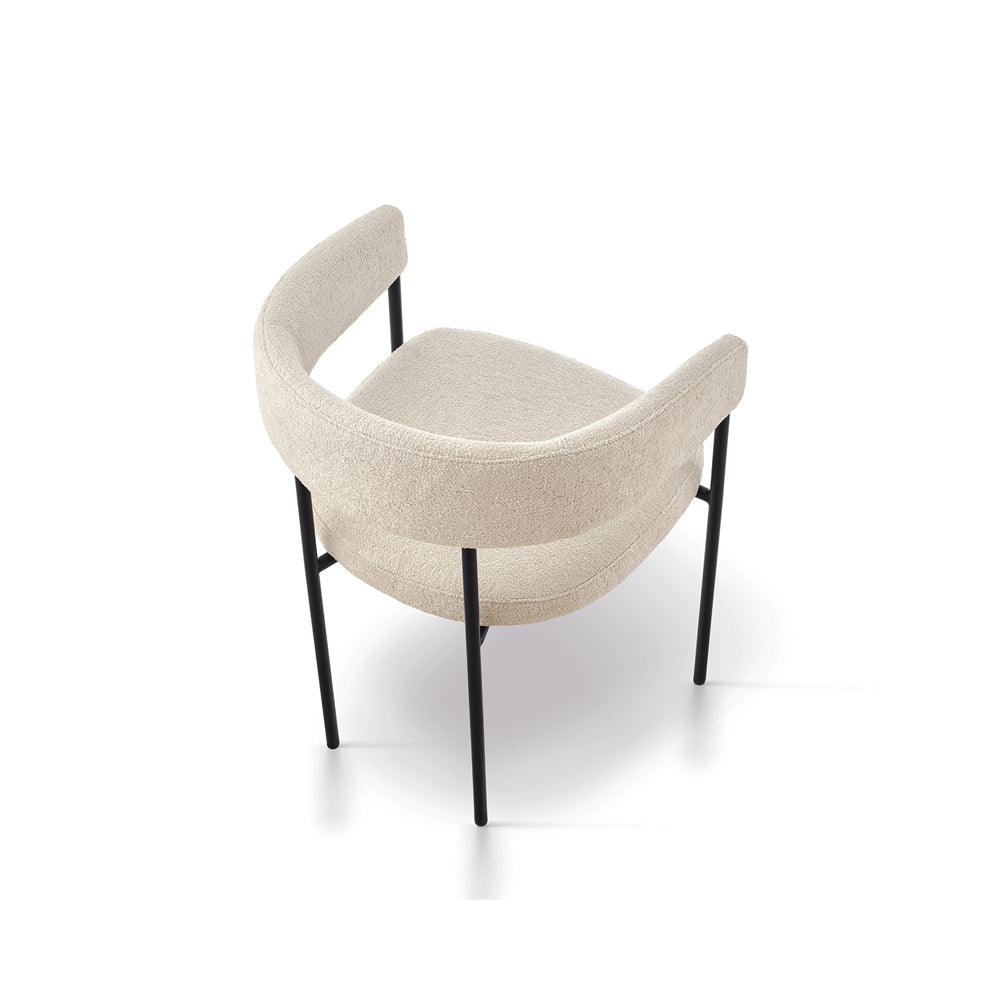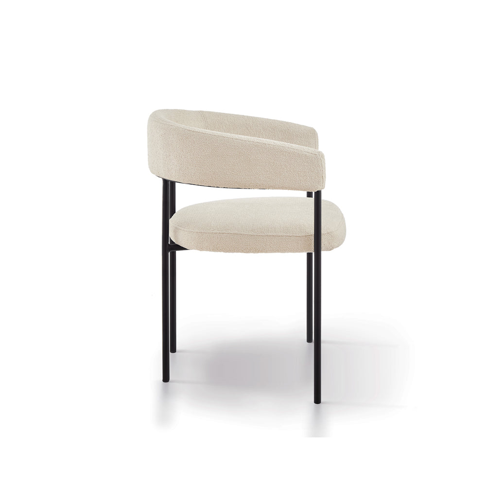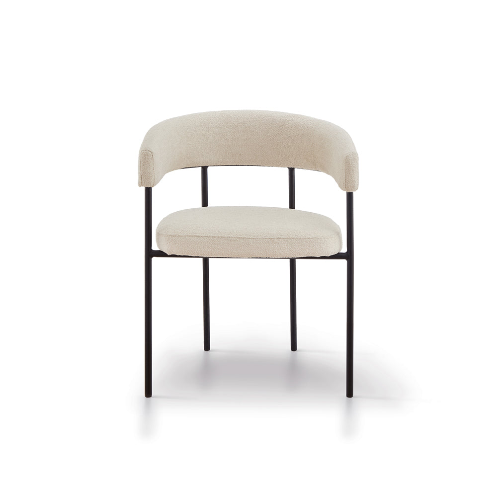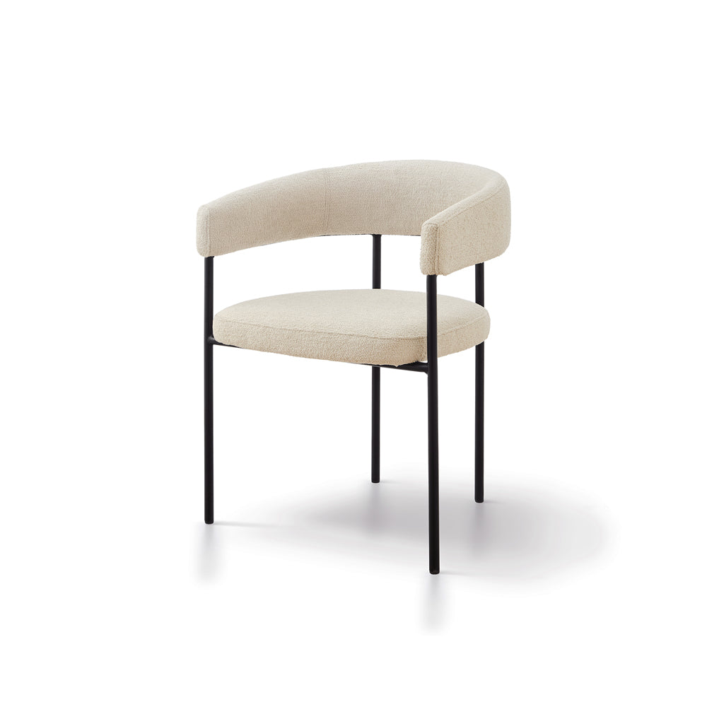 The striking matte black steel legs provide a modern and bold contrast, enhancing the chair's visual appeal while ensuring stability and durability. The perfect fusion of form and function, these sturdy legs lend a contemporary edge that effortlessly blends with diverse décor themes.