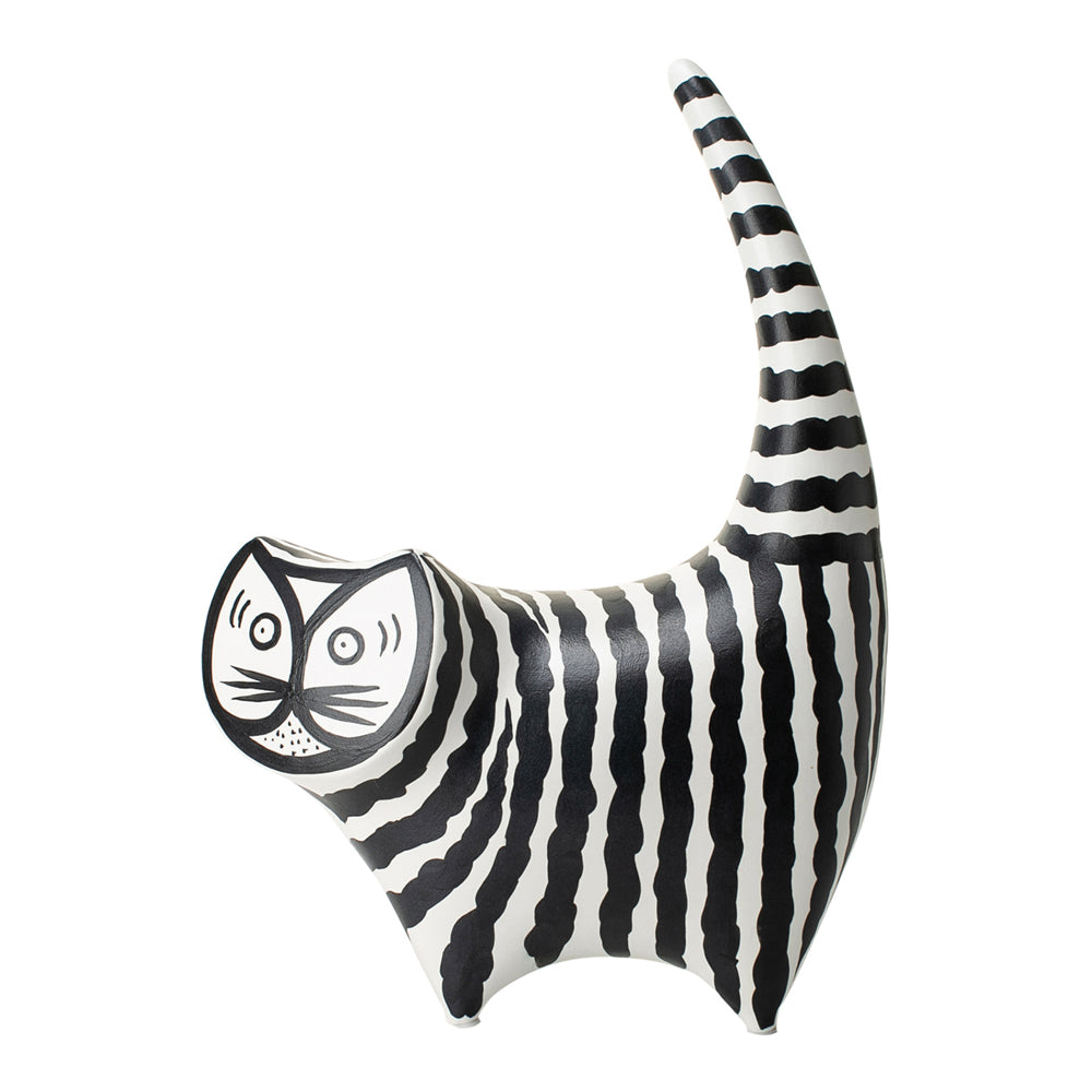 With dimensions of 50cm high, 38cm wide and 18cm deep, this unusual black and white cat with its distinctive horizontal-striped body, vertical-striped tail, whiskers and somewhat bemused expression will be a great talking point amongst your guests and bring charm to your home.