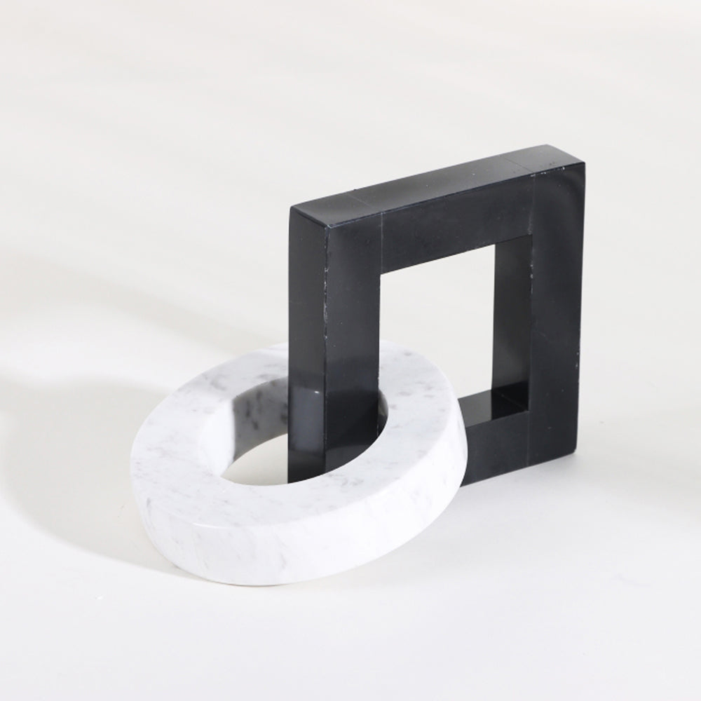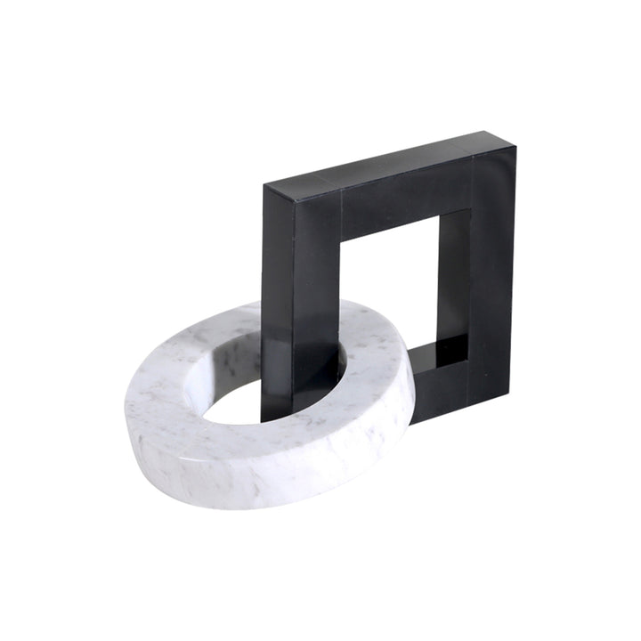 This stunning geometric Liang & Eimil Link Marble Sculpture is as contemporary as it is timeless and can enhance anywhere, from an ultra-modern home to a high-tech office environment. The contrast of circular and square shapes and black and white tones make for a striking finish that can elevate the design credentials of a neutral area or add to a bold interior.