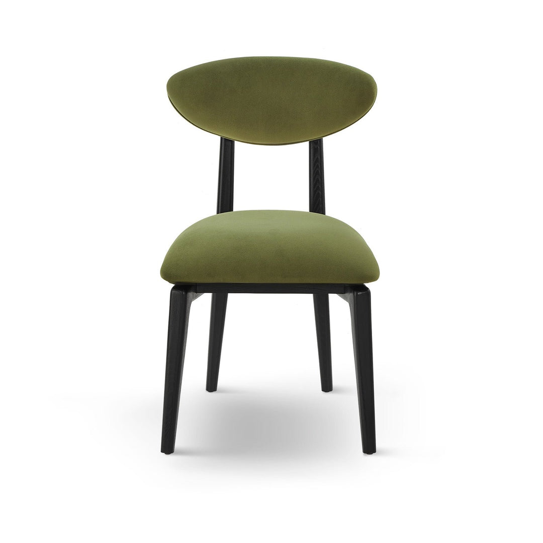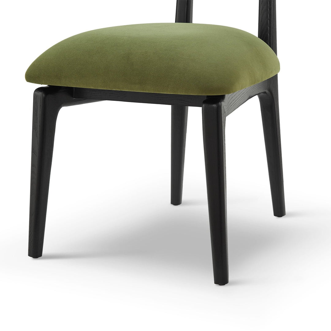 Crafted from Melbourne Olive fabric and complemented by a sturdy Matt Black Solid Ash Wood frame, this chair exudes quality and elegance while also promoting sustainability. The main features—the contoured seat and back—ensure a relaxed seating experience, inviting guests to linger longer. Transform your space into a haven of chic design with the Maja Dining Chair, where comfort meets contemporary style and eco-friendly practices.