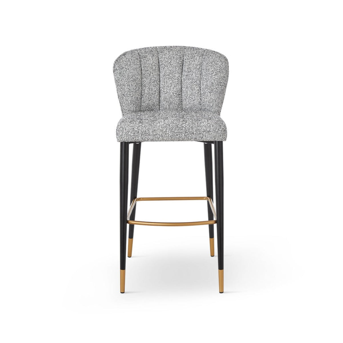 This makes it ideal for hotels, restaurants, and homes where safety and elegance converge seamlessly. Whether placed at a chic bar or as accent seating in a modern kitchen, its design harmonises effortlessly with diverse decor schemes. Features: Crib 5 - BS7176 fire safety standard Talbot Freckle upholstery. Matt Black Steel Legs and Brushed Brass Features. Also Available in Megan Grey (CR) and Megan Oxide (CR)