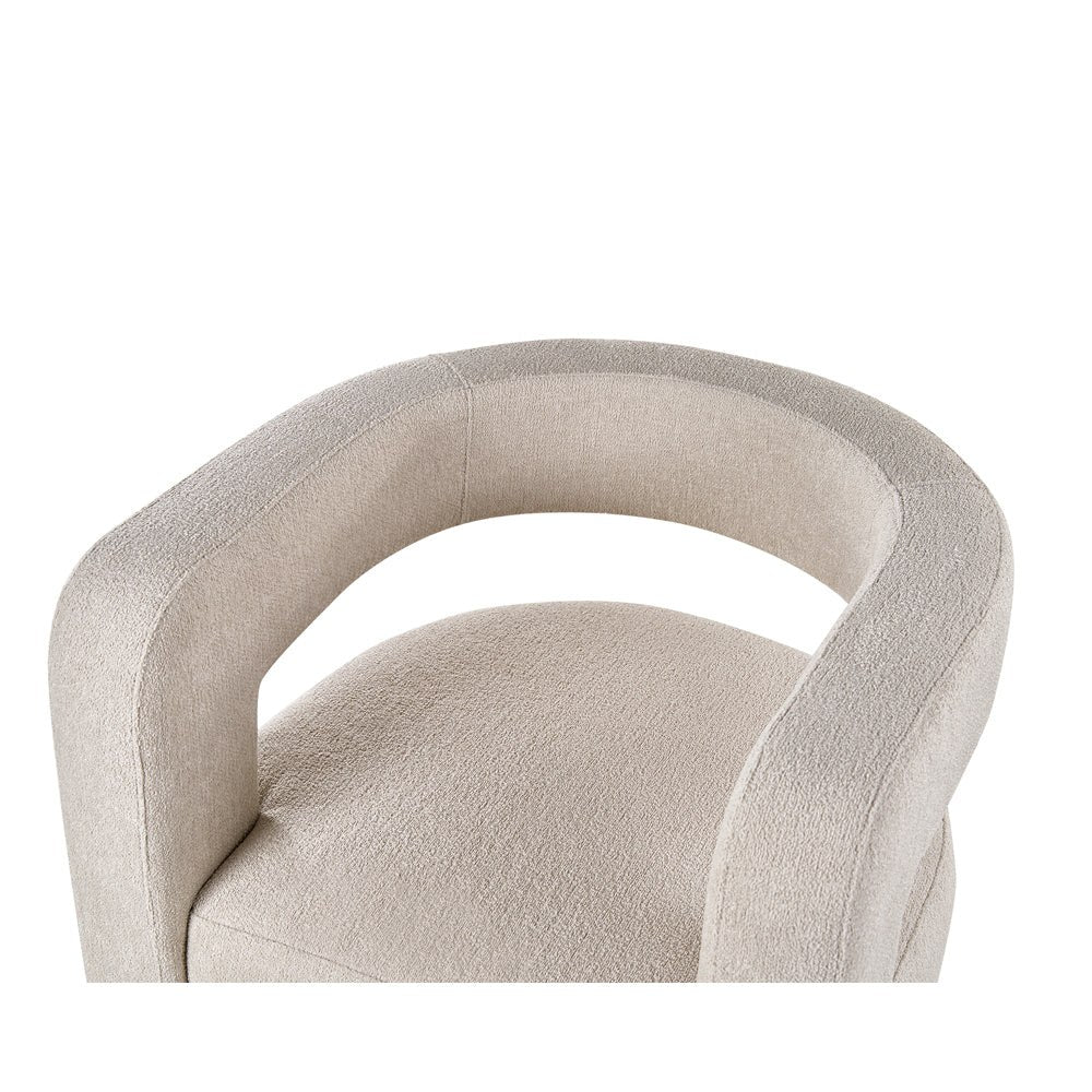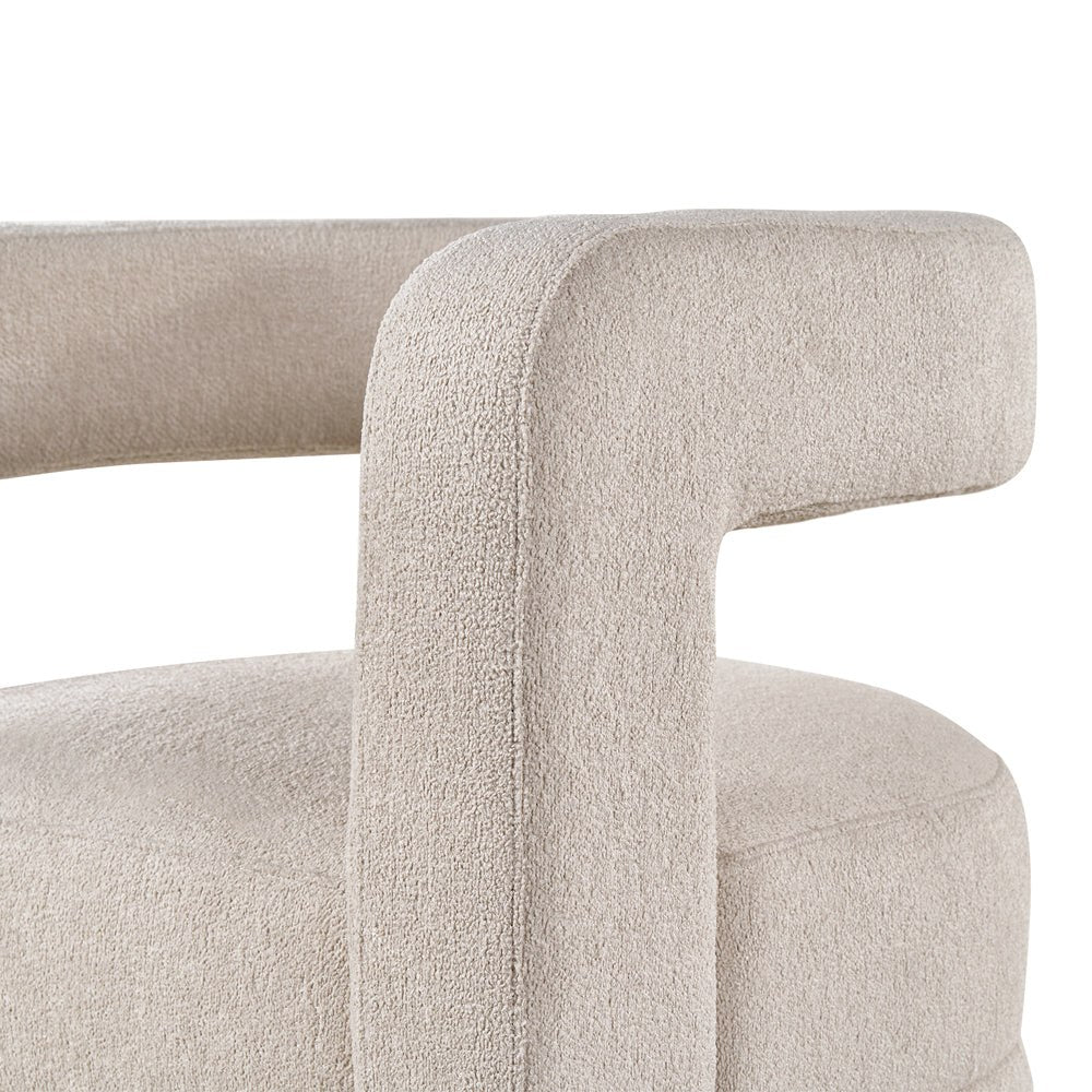 Discover the perfect blend of sophistication and relaxation with the Minox Armchair, designed to elevate your seating experience. Draped in the timeless Lander Shade chenille fabric, a neutral beige hue, this armchair seamlessly complements any interior while exuding elegance in simplicty. Embrace the ultimate comfort as you sink into the plush embrace of the Minox Armchair. The Lander Shade chenille fabric offers a luxurious tactile sensation, creating an inviting atmosphere of opulence that enhances your moments of relaxation. Enhancing both aesthetics and functionality, the armchair boasts an innovative C-shaped design that integrates seamlessly with the armrest. The neutral tones of Lander Shade fabric create a versatile canvas, allowing this piece to harmonise effortlessly with various design styles for your interior design projects. Whether you're unwinding with a book or engaging in conversation, the Minox Armchair invites you to embrace its comfort and revel in style. Features: Chenille fabric in Lander Shade