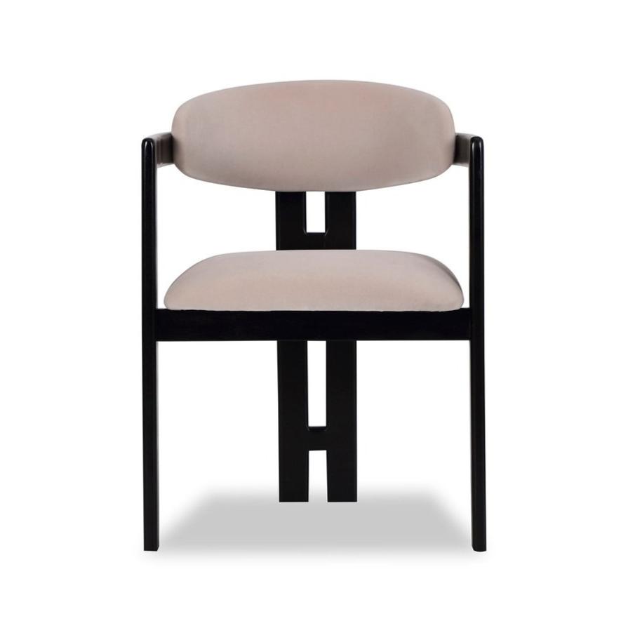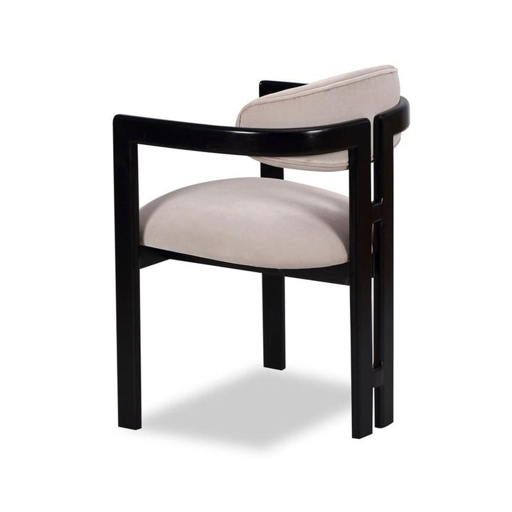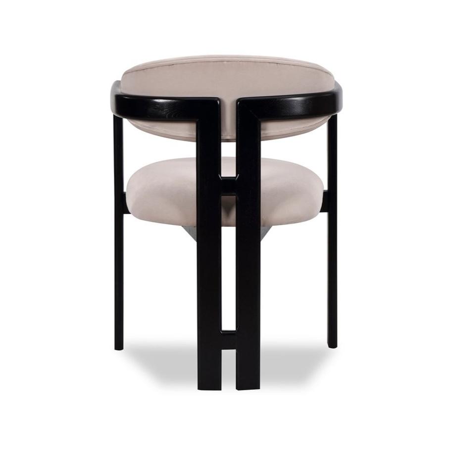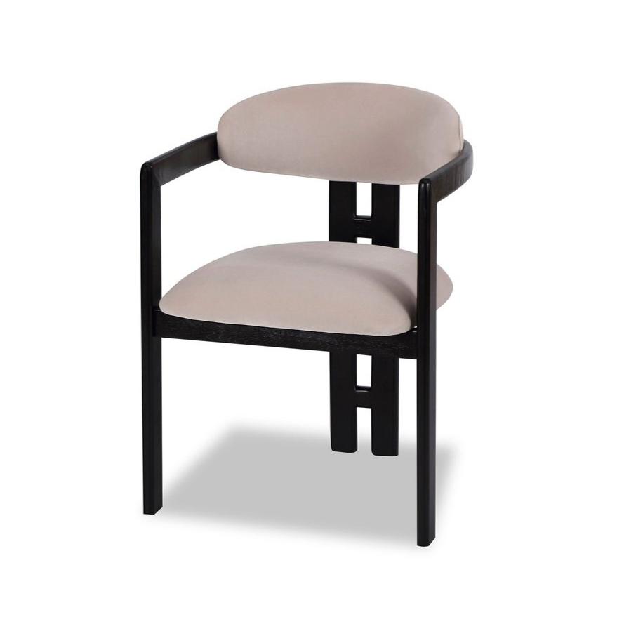 Featuring a geometric design the Neo Chair is a welcome addition to our dining chair collection. Upholstered in a stunning Gainsborough Ash Grey Velvet and finished in a matt black oak solid wood.