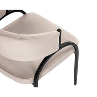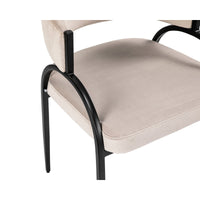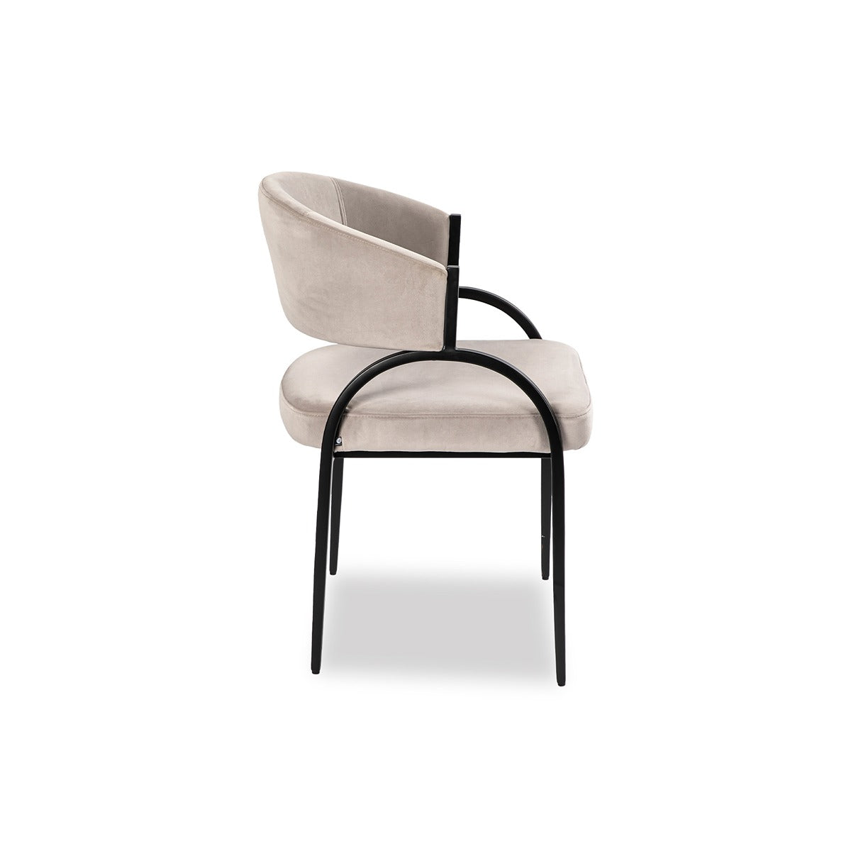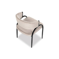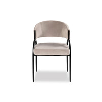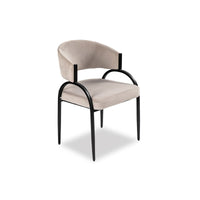 Experience the allure of the Pavilion Dining Chair, where captivating curves of natural iron meet sumptuous Megan Light Grey velvet upholstery for an embrace of elegance. The addition of eco-friendly recycled fabric enhances its appeal, offering a sustainable choice without compromising on style.