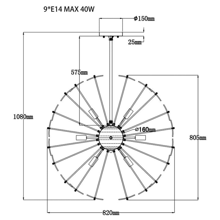 Frosted Glass and Nickel. This lamp requires 9 of 40W, E14 type bulb. Bulb is not included!