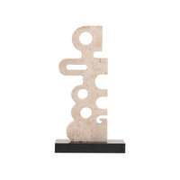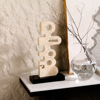 Sculpted Serenity Travertine & Marble Sculpture - Beige & Black