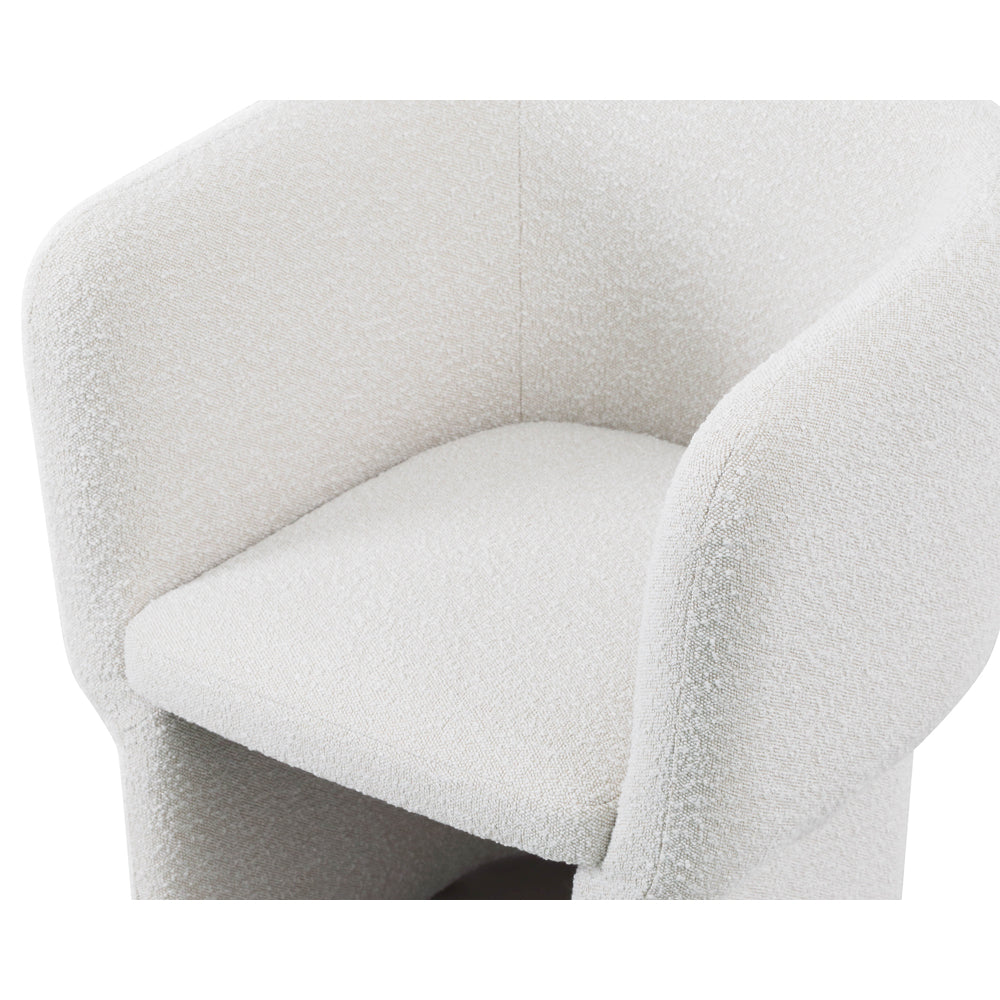 Fully upholstered in tactile boucle, the Tempus chair is both dining and accent chair. Around a dining table or flanking your favourite console table the Tempus has versatility beyond just the dining room. With its lyre shaped uprights and cradling seat and back this chair is fabulous from all angles.