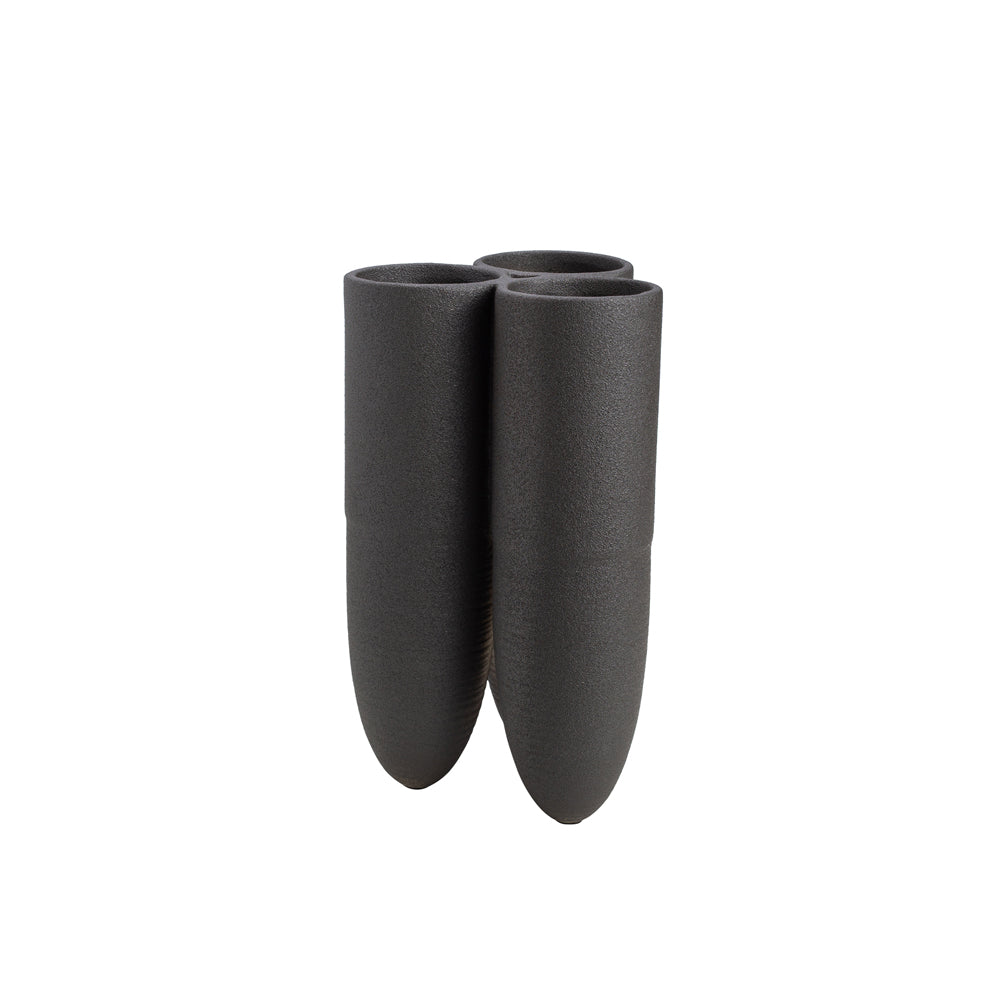 This beautiful Torpedo vase from Liang & Eimil will make a beautiful addition to your room. Finished in black glazed ceramic with a beautiful textured surface, it has three torpedo shaped chambers to put your flowers in. It is an unusual modern design that would suit a room with a contemporary style. This vase is perfect for displaying flowers, either fresh, dried, silk or artificial.