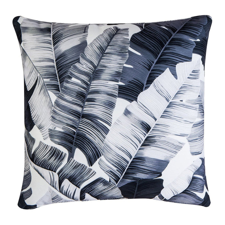 The subtle monochrome print depicts tropical fronds, graceful and feather-light as they create an eye-catching and modern display.