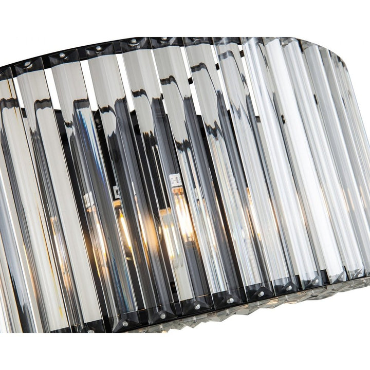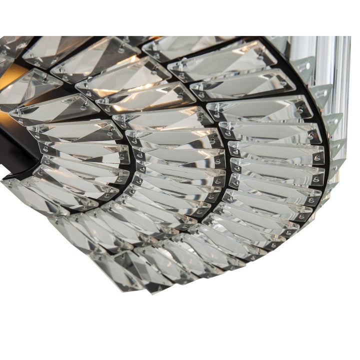 Elegant with its crystal layered finish and matching black metal frame, the fixture will allow light to flood the room, creating a cosy and relaxing ambience.