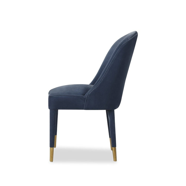 Versatility meets elegance in the most comfortable way. Boasting a sleek design, the Viva Chair is fully upholstered in a soft Gainsborough Cobalt Velvet and finished with gold metal tips.