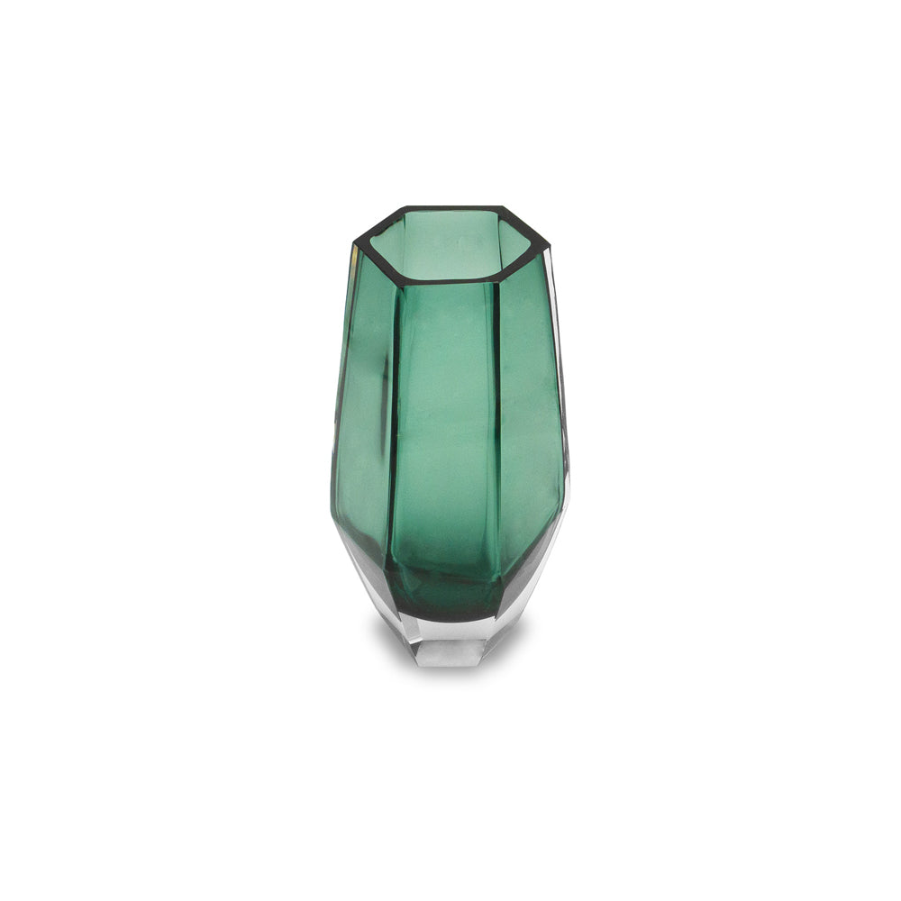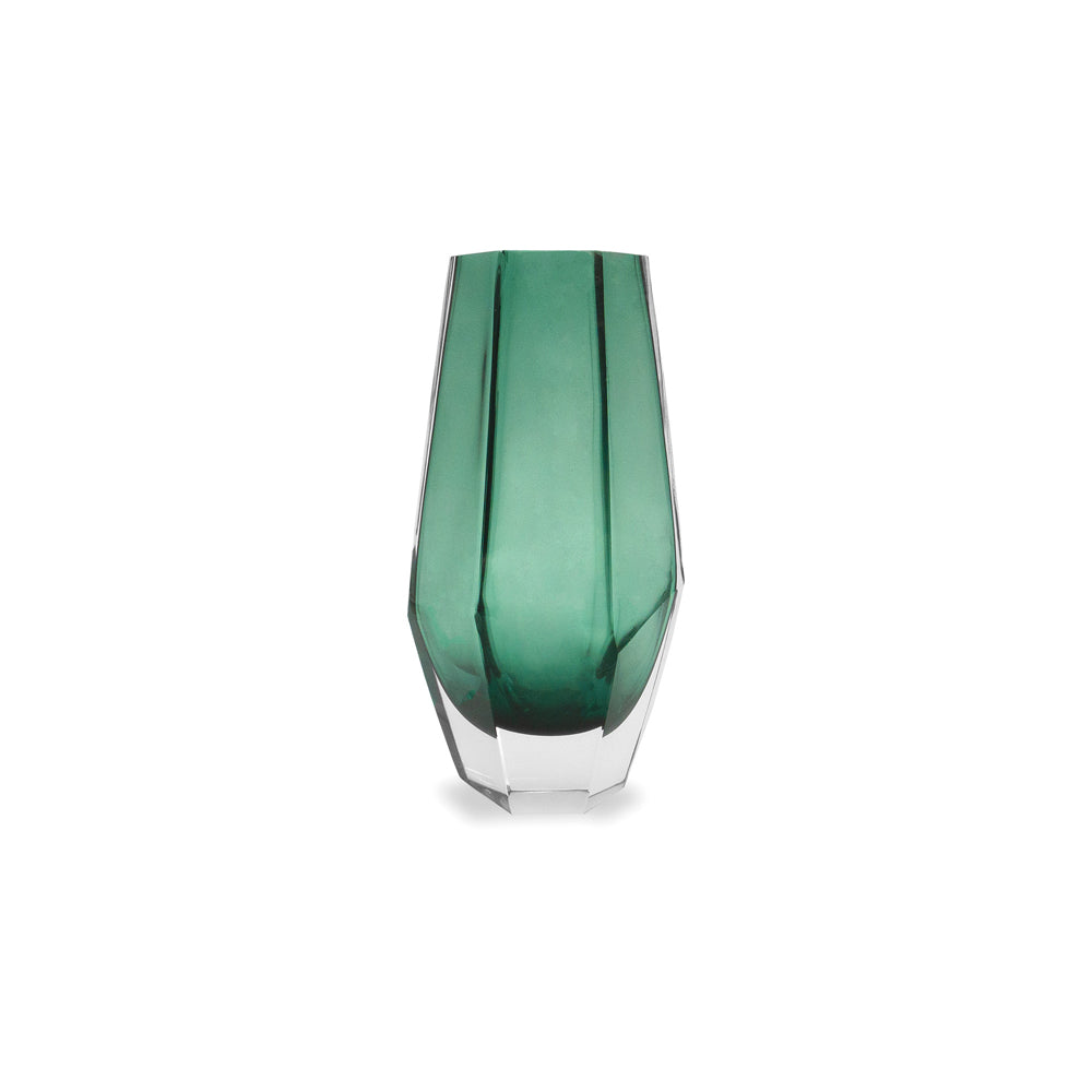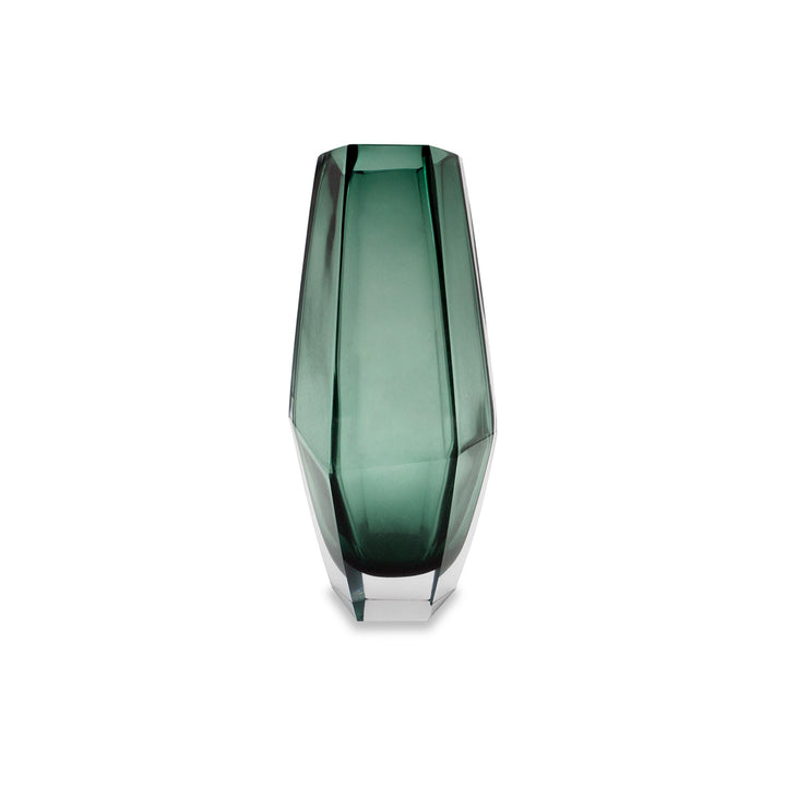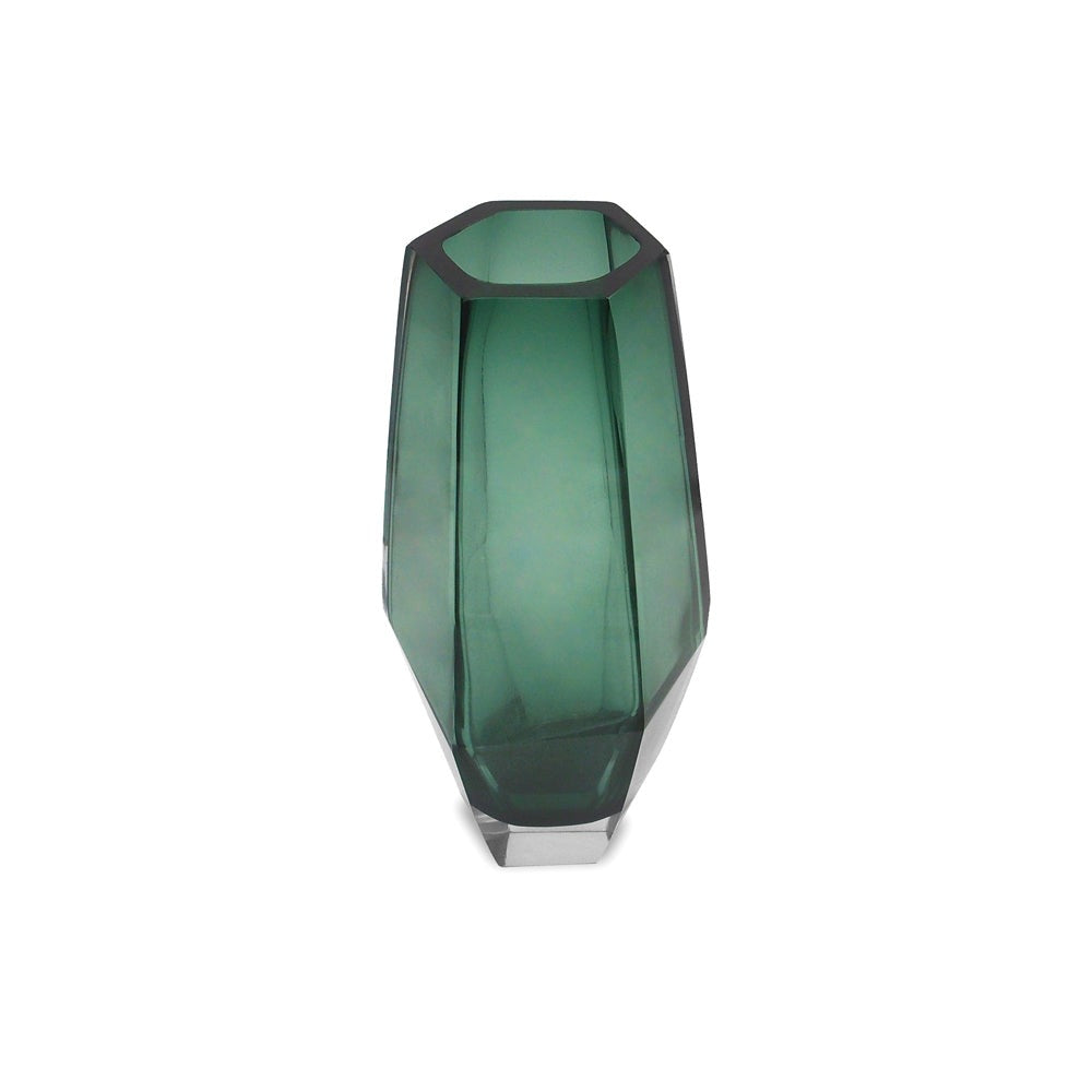 This Liang & Eimil Wiley glass vase in green is the perfect decorative piece for your contemporary home. In a dark, soft and smoky shade of evergreen, this geometric-inspired vase will look beautiful on a windowsill or other surface, either displayed as a solo piece or filled with flowers.