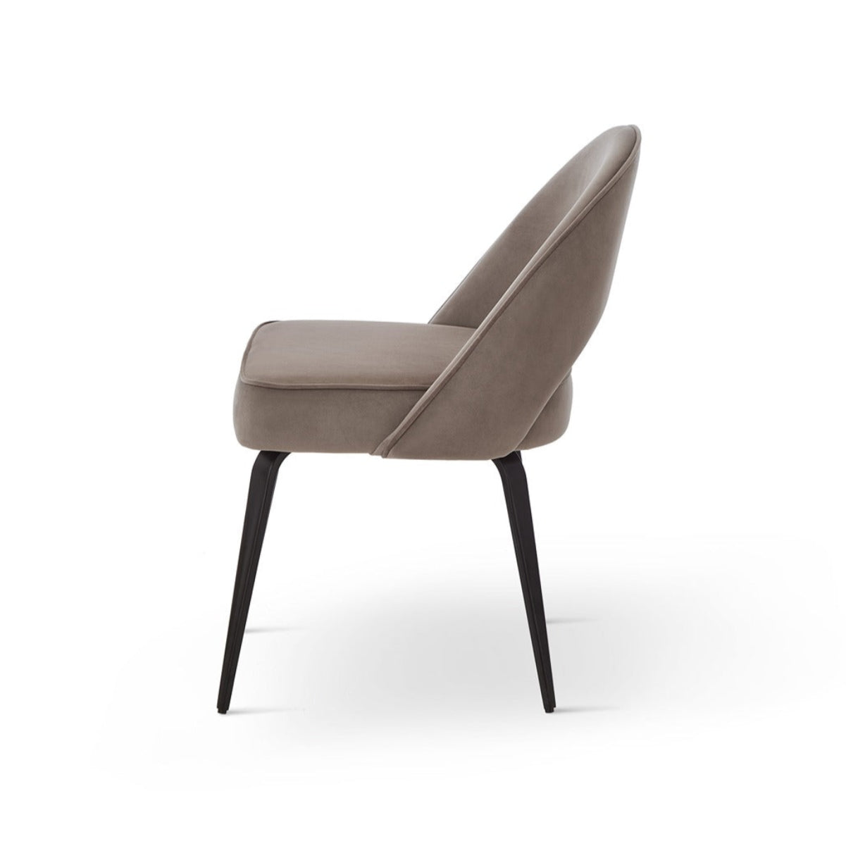 Experience the Yves Dining Chair in Megan Mink and Matt Black, a fusion of modern design and safety compliance. Crafted for both hospitality and residential settings, its distinctive silhouette and sleek, matt black legs harmonise effortlessly. Notably, this fabric adheres strictly to the BS7176 standard, ensuring compliance with crucial fire safety regulations. \n \nIdeal for venues prioritising safety without compromising style, it's Crib 5 fabric offers peace of mind, meeting rigorous UK standards for upholstered furniture. Whether adorning a chic restaurant or a sophisticated dining room, this chair complements diverse interiors while upholding essential safety measures. The addition of eco-friendly recycled fabric enhances its appeal, offering a sustainable choice without compromising on style.
