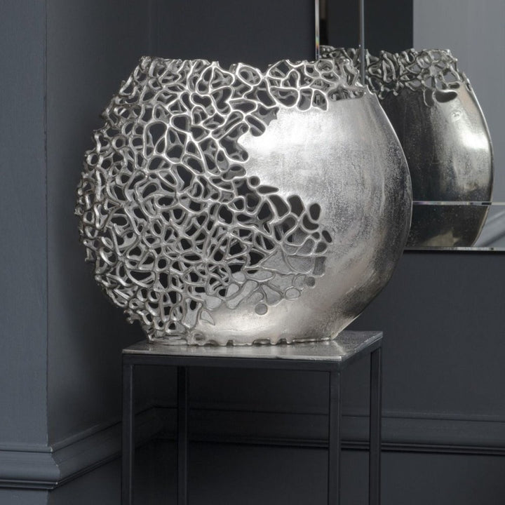 If you are looking for a statement piece for a mantlepiece, fireplace or book shelf, the Libra Apo Coral ellipse vase is a beautiful, intricately designed work of art.